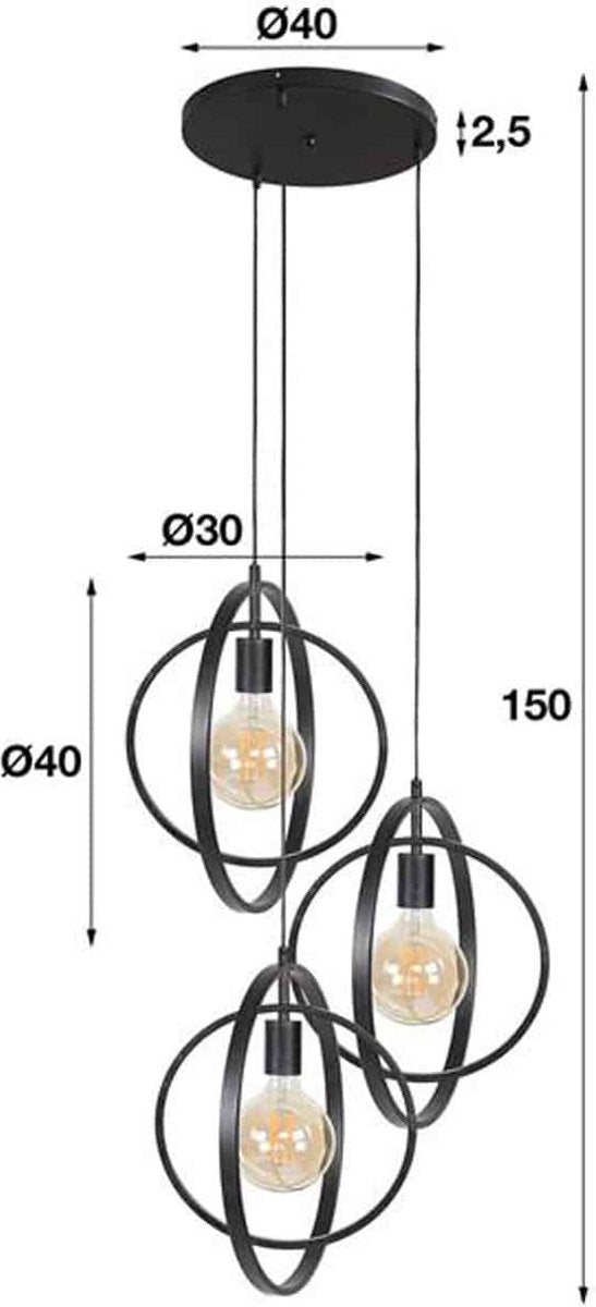 De landelijke hanglamp charcoal behoort tot de serie “Turn Around”. Deze landelijke hanglamp heeft een draaibare metalen midden cirkel elk met een E27 fitting. Je kunt deze 360 graden draaien zodat je de lamp van model kunt veranderen. Het snoer is in hoogte verstelbaar tot een maximale hoogte van 150 centimeter. Bevestiging doe je eenvoudig met de zwarte plafondplaat (Ø 40 cm). De middencirkel heeft een diameter van 30 cm en de buitenste een diameter van 40 cm.