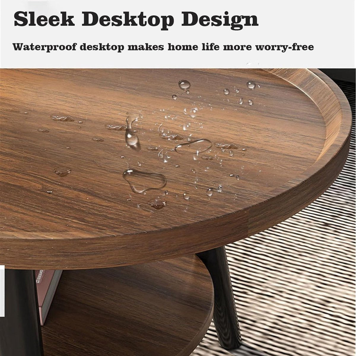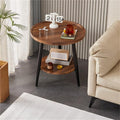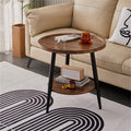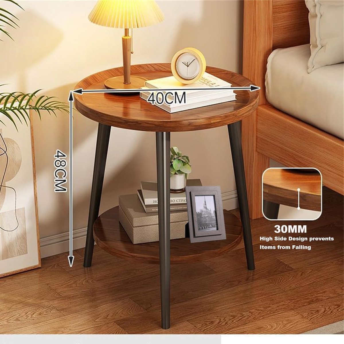 Houten bijzettafel, 2 niveaus, ronde salontafel met opbergruimte, salontafel rond, woonkamertafel, nachtkastje voor kleine ruimtes, bijzettafel voor woonkamer, slaapkamer, H x D 48 x40cm