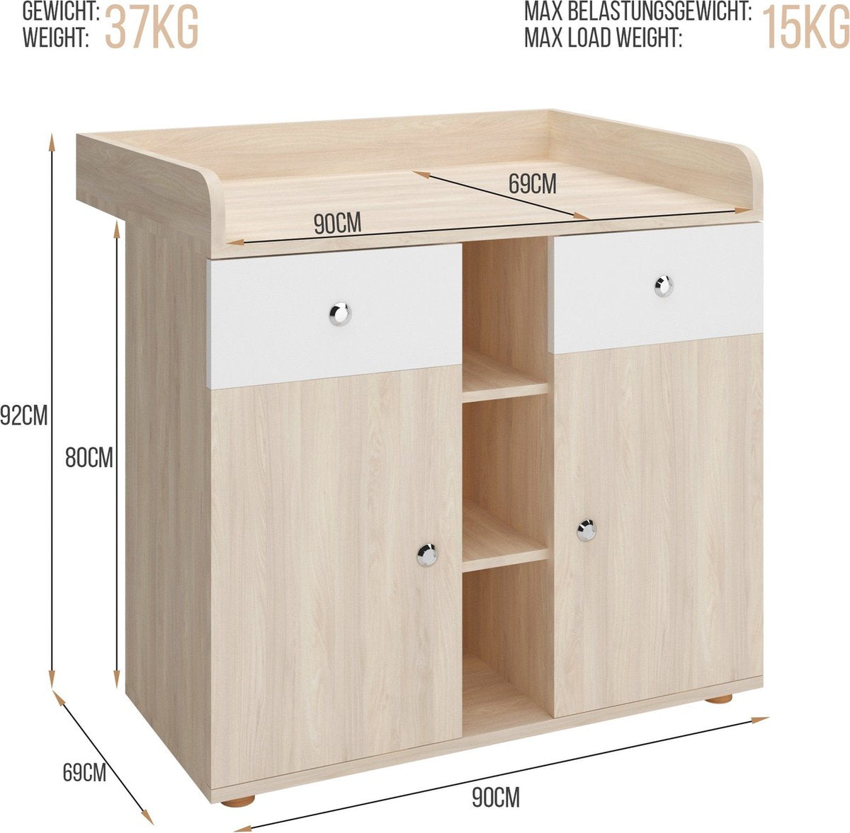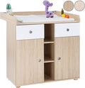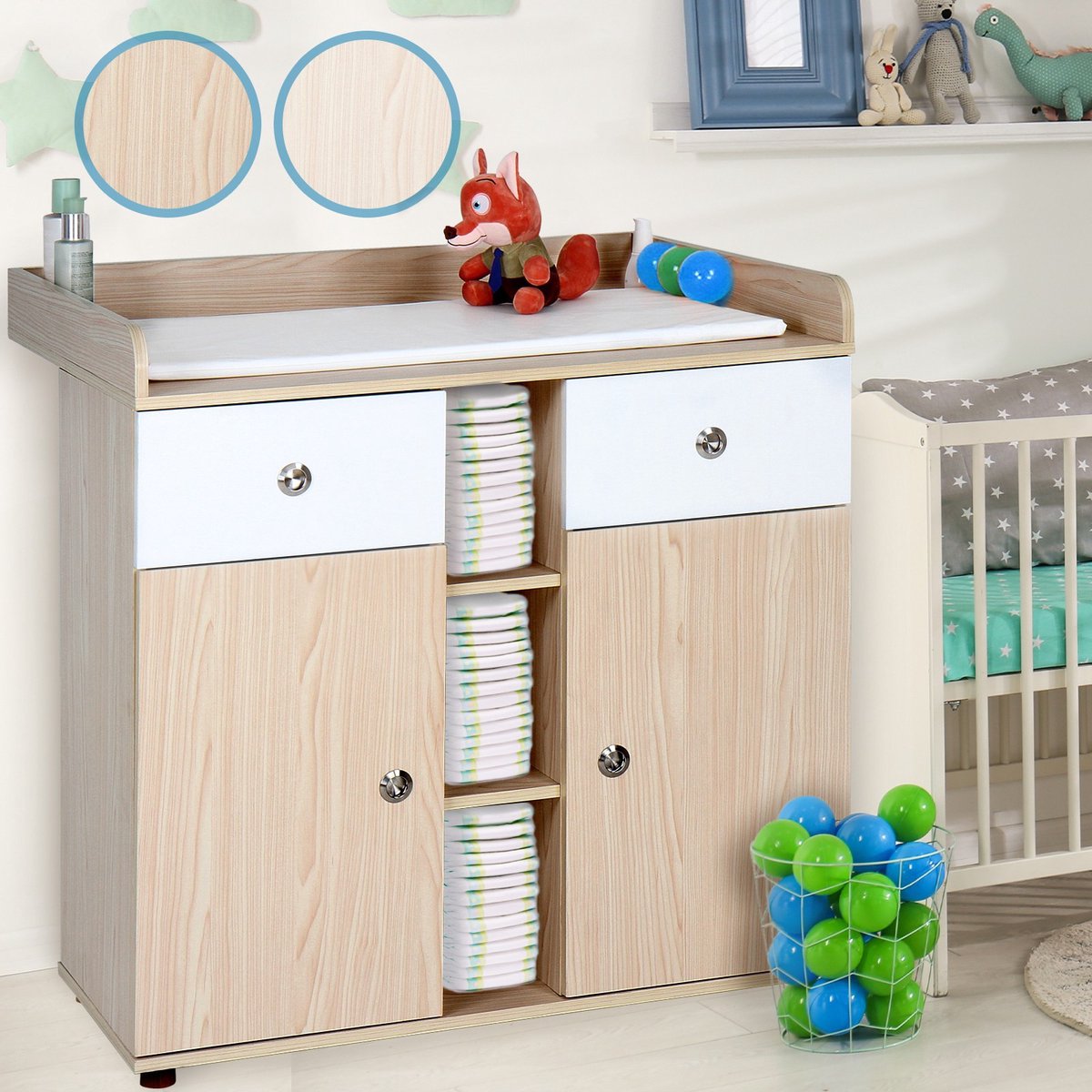Infantastic - Babycommode met 2 grote lades en 5 vakken - Ladekast met Opbergrumte - Veelzijdig Omkleedmeubel met Organiser - 90x69x92 cm (LxBxH) - Beuken-Fineer