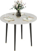 J&R Eettafel - Marmerlook - Wit met zwarte poten - Rond blad 80cm