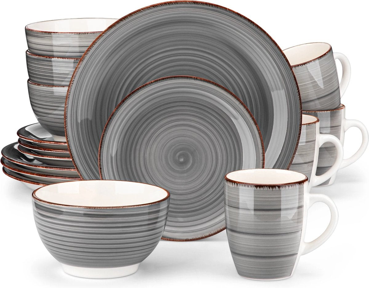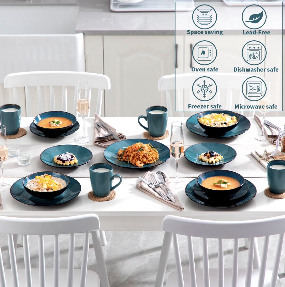 - Complete set voor 12 personen: De set bevat 48 stuks, waaronder 12 grote borden, 12 dessertborden, 12 kommen en 12 koffiekoppen. Hiermee kun je een complete maaltijd serveren, van voorgerecht tot dessert en koffie.
