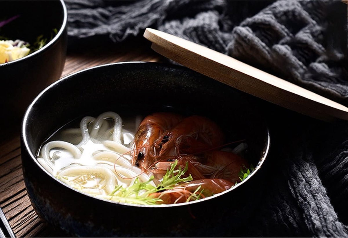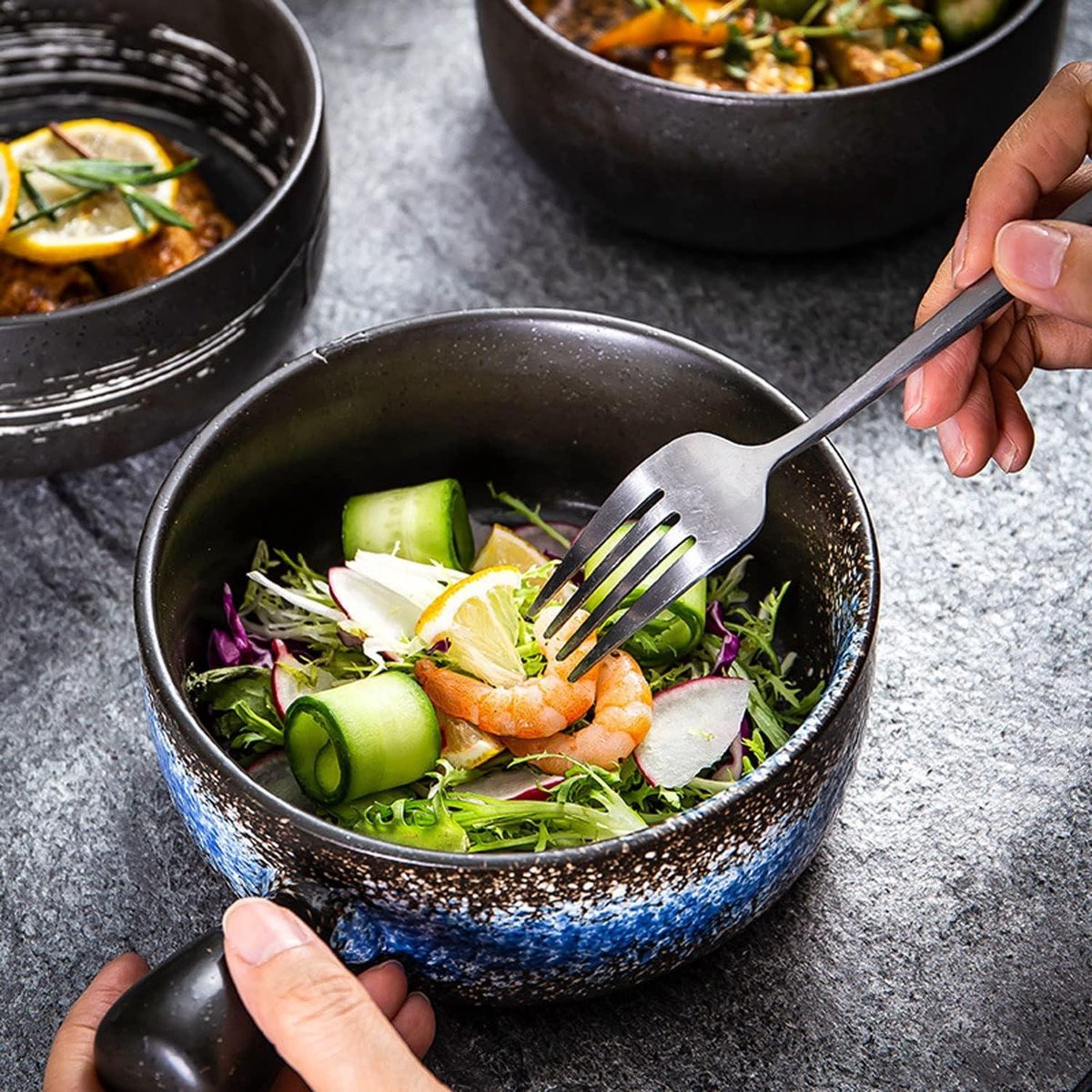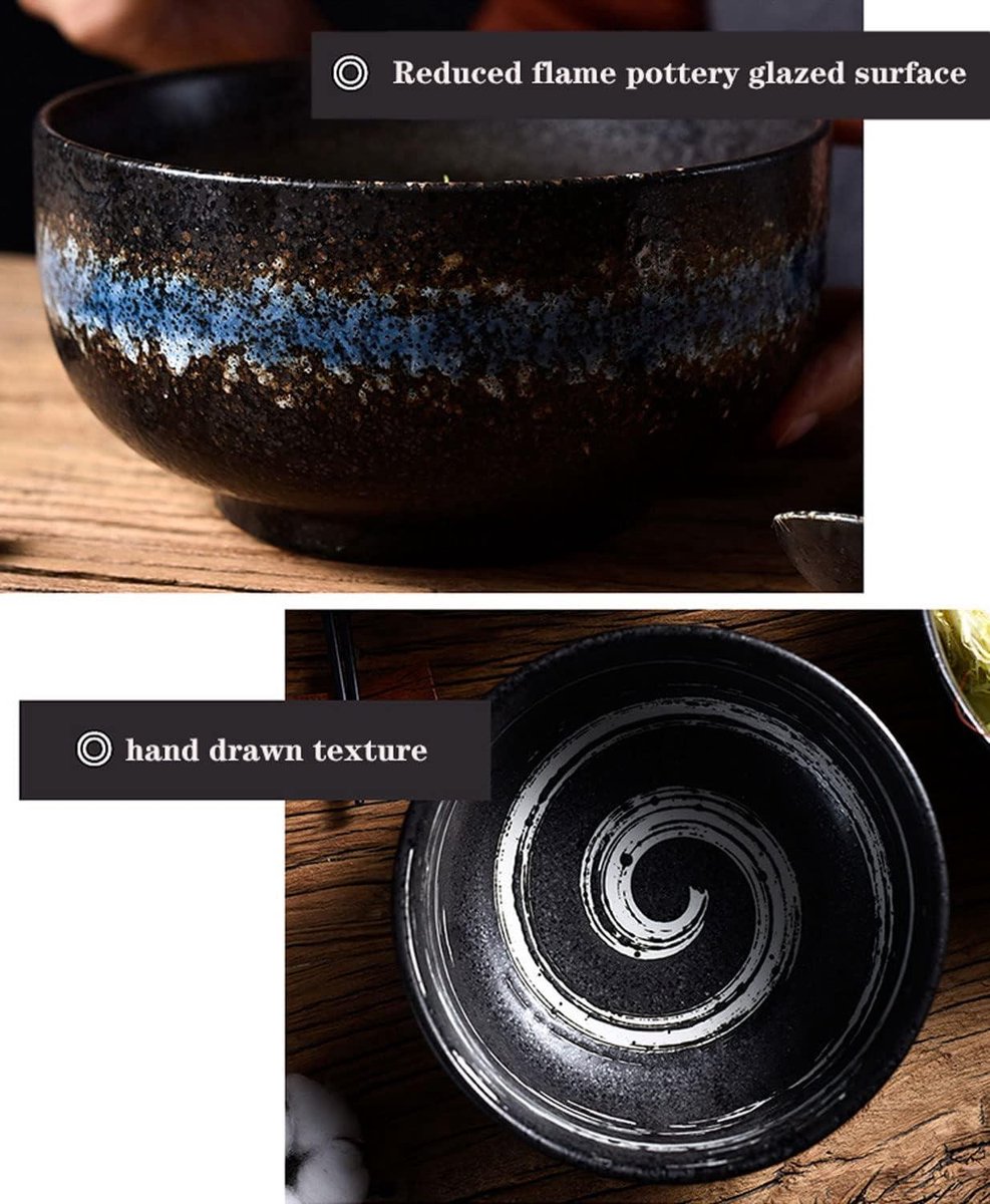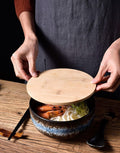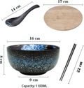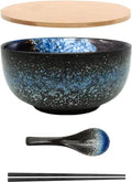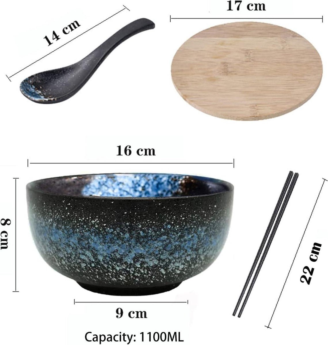 Japanse Ramen Kom Set - Keramische Salade Noodle Grote Soepkom Met Deksel En Lepel - Ontbijtgranen Soep Dessert En Rijst Kom - Magnetron Oven Vaatwasser - Blauw Ice Set