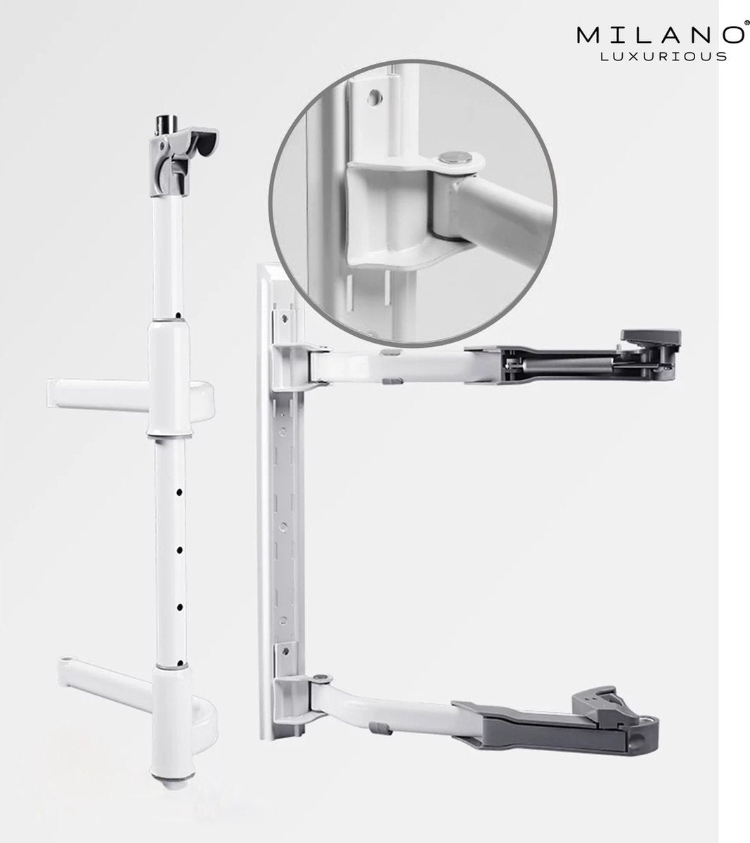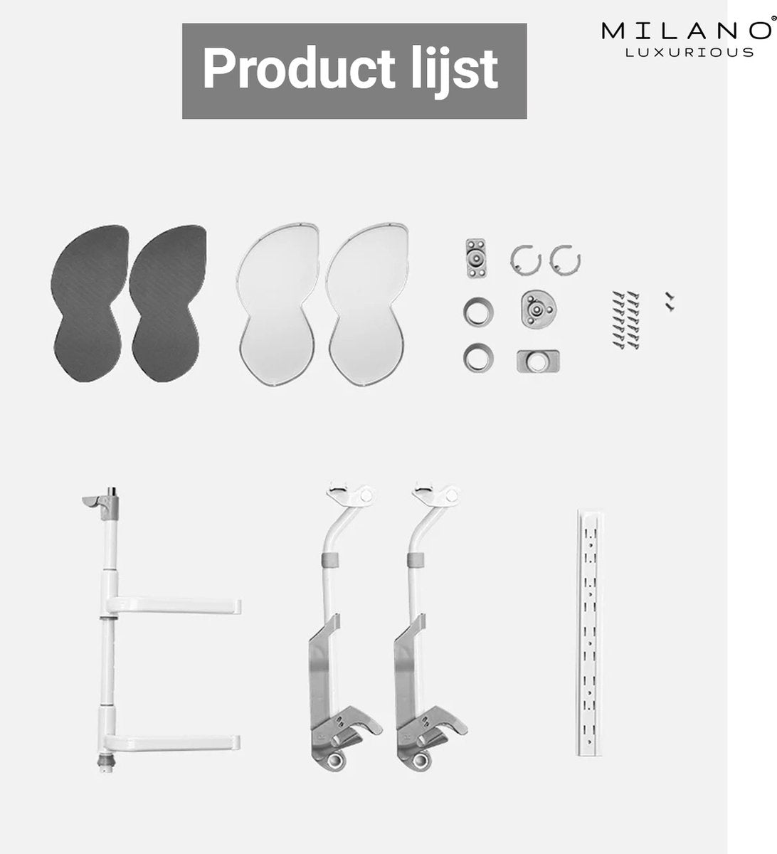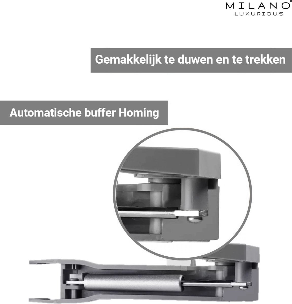 Bij aankoop van de Milano Luxurious® LEMANS90L ontvang je al het montagemateriaal dat nodig is om het systeem in je kast te monteren. Hierdoor kun je binnen enkele minuten gebruik maken van de kast en de gewenste spullen gemakkelijk en snel opbergen.