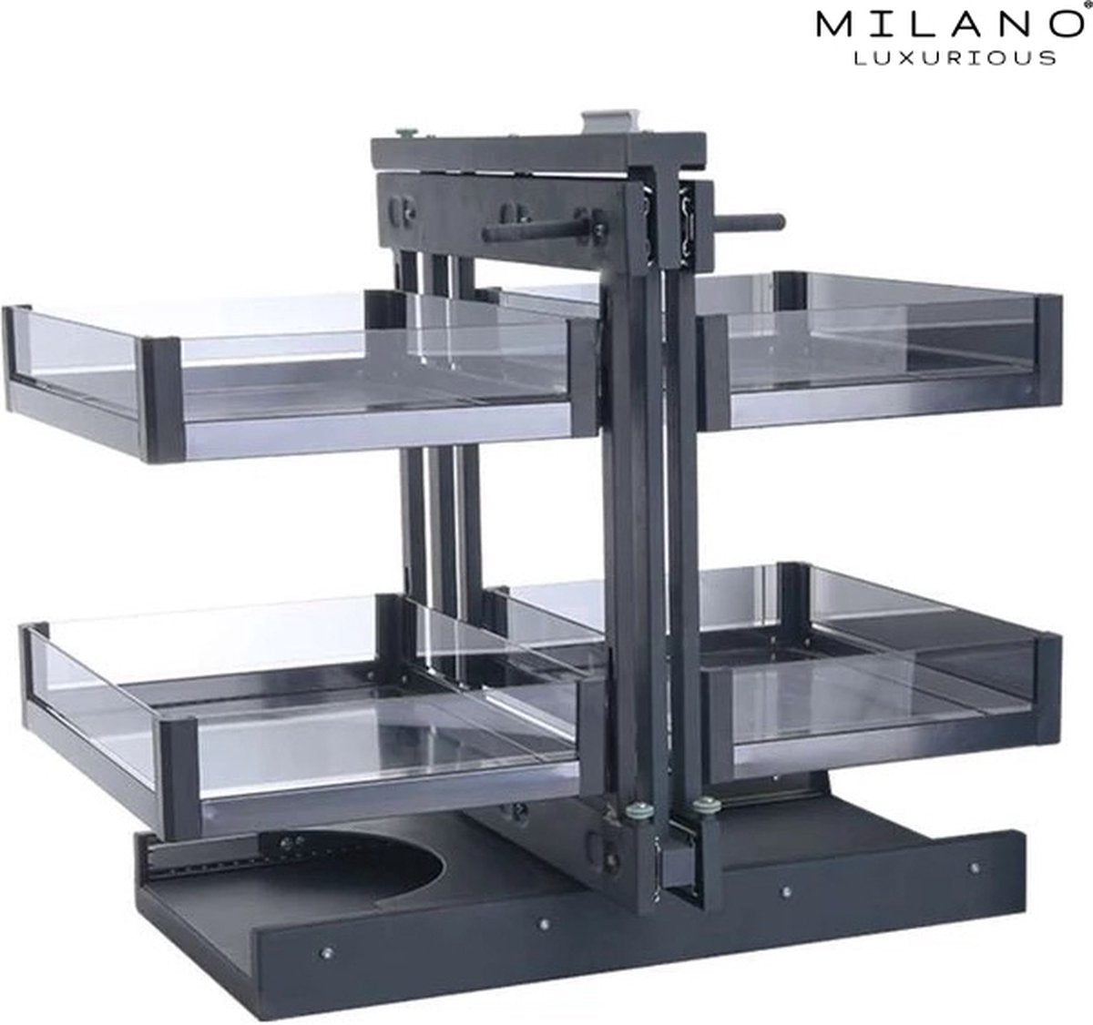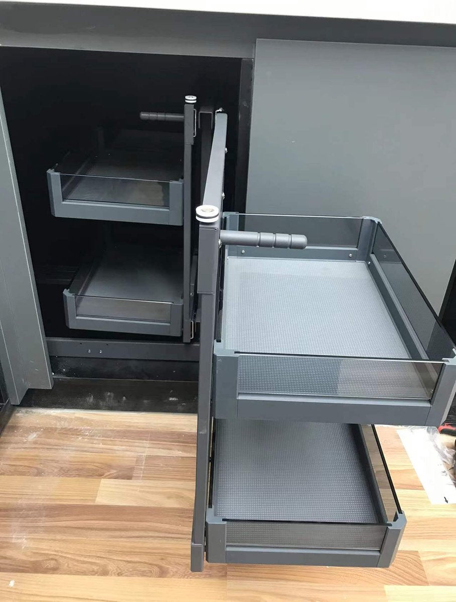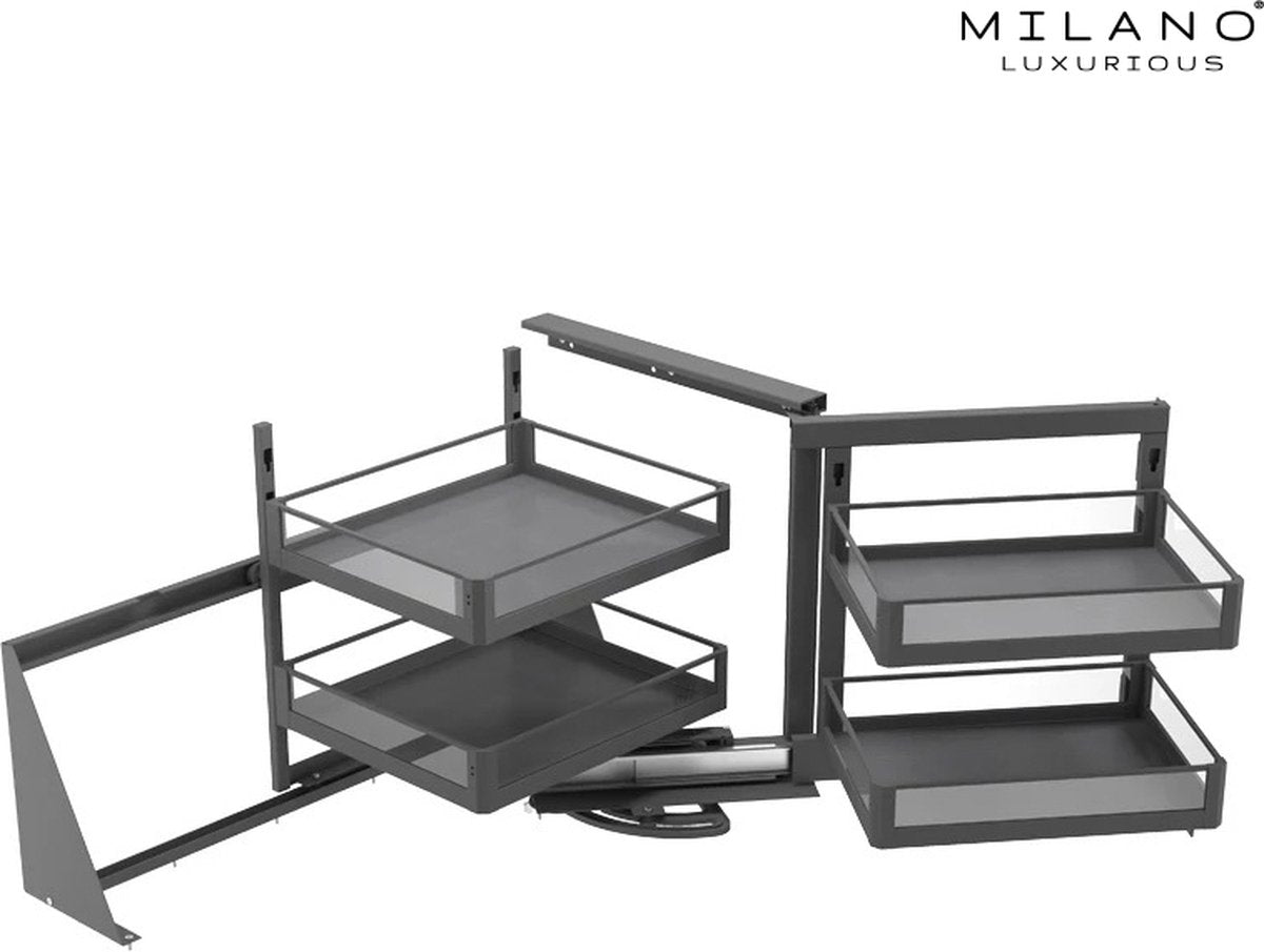 Milano Luxurious® Magic Corner - Hoek Keukenkast Organizer- Uitschuiflades - 4 plateaus, 2 levels - 48 x 87 x 58 cm - deurbreedte 40 cm – antraciet