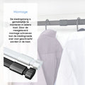 LET OP: Bij gebruik langer dan 120cm alleen lichte kleding gebruiken i.v.m. doorbuigen van de stang bij het gebruik van zware kleding.
