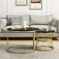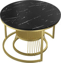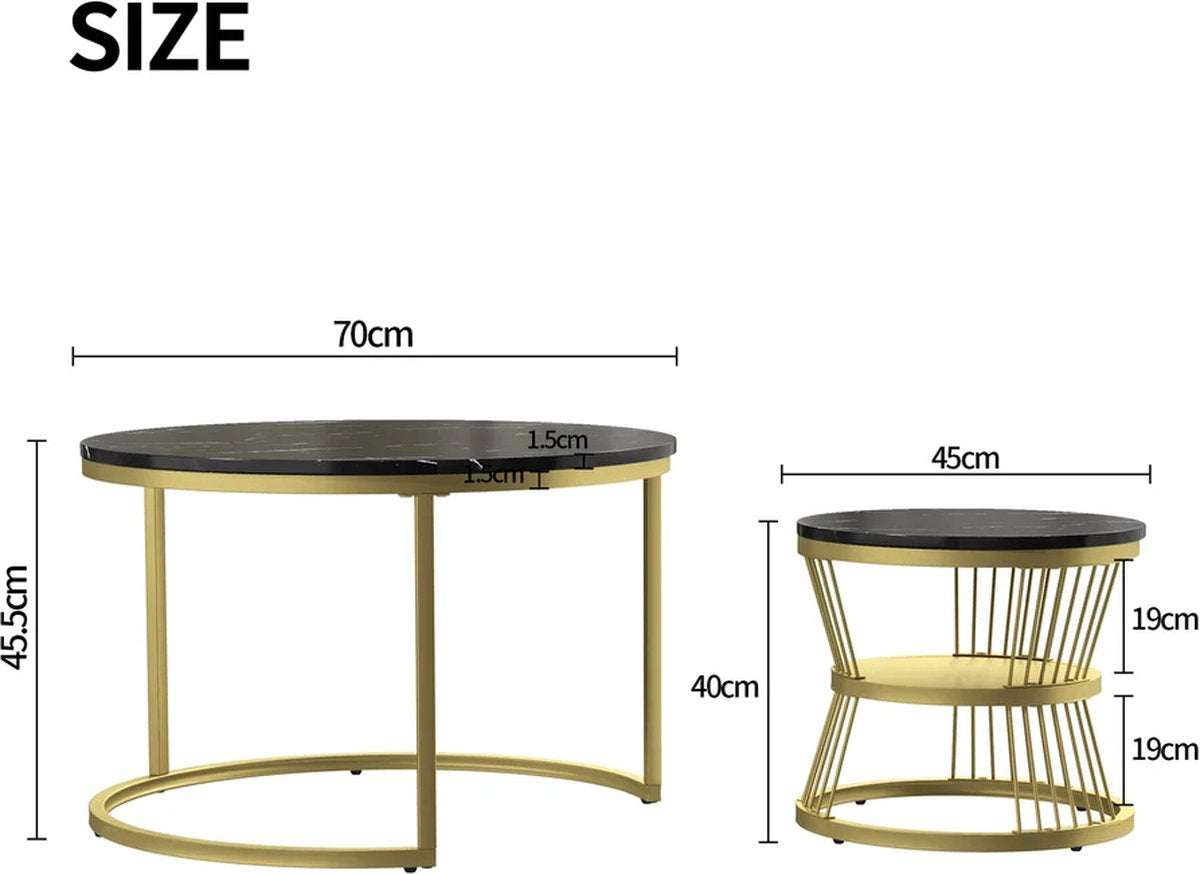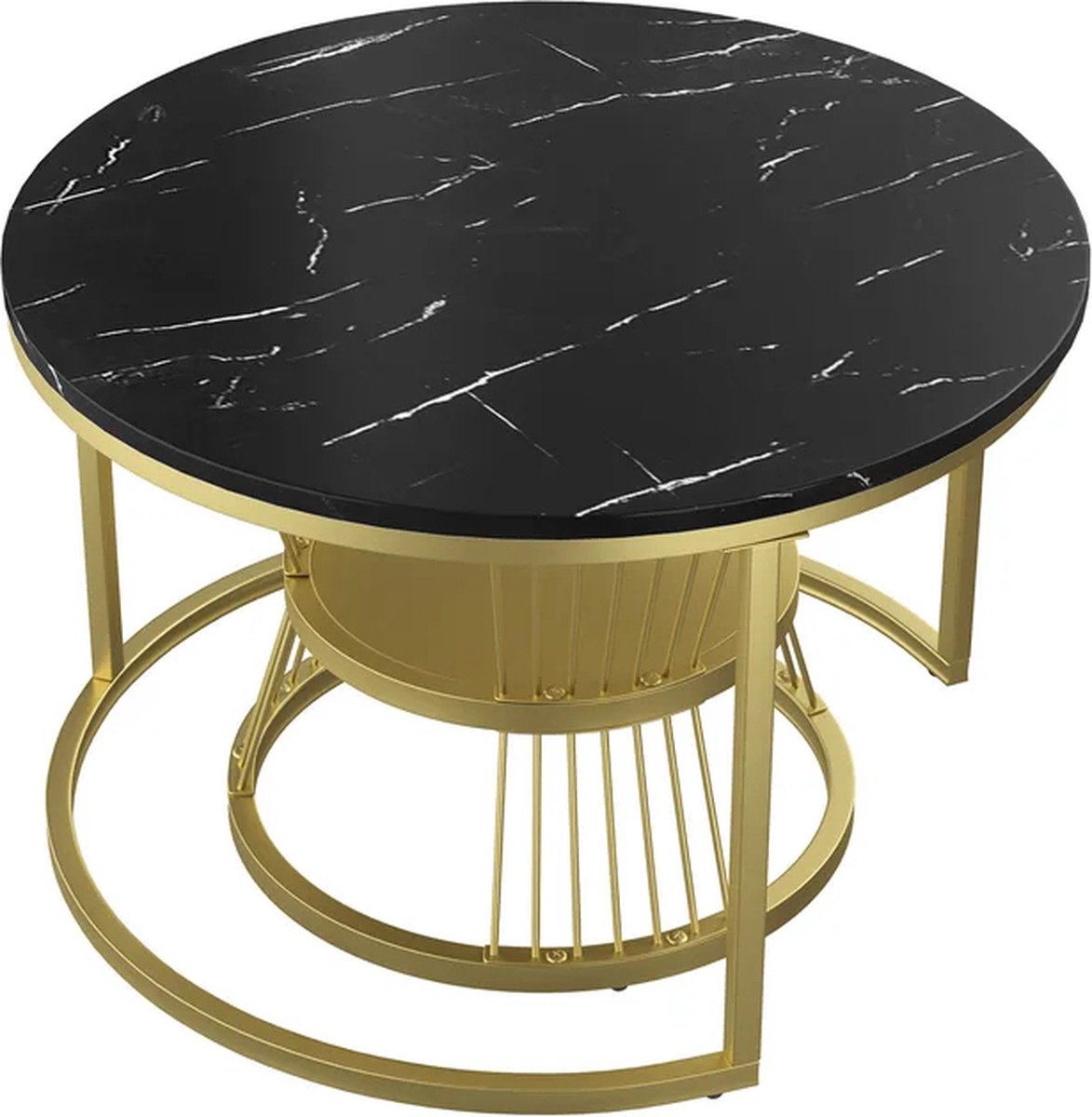 Moderne Salontafel - 70 en 45 cm - Koffietafel - Bijzettafel - 2 Stuks - Ronde Salontafel - Marmer Look - Zwart - Goud