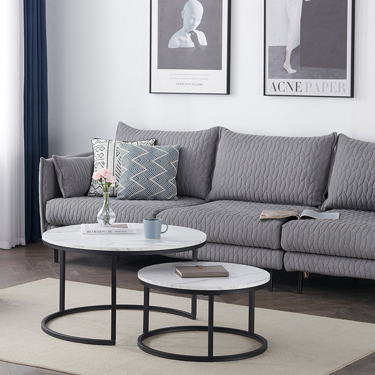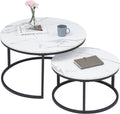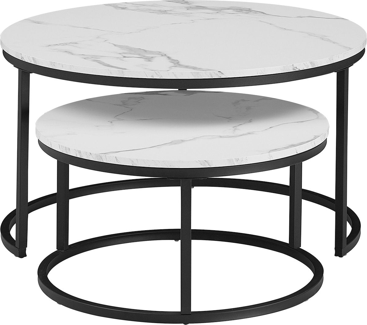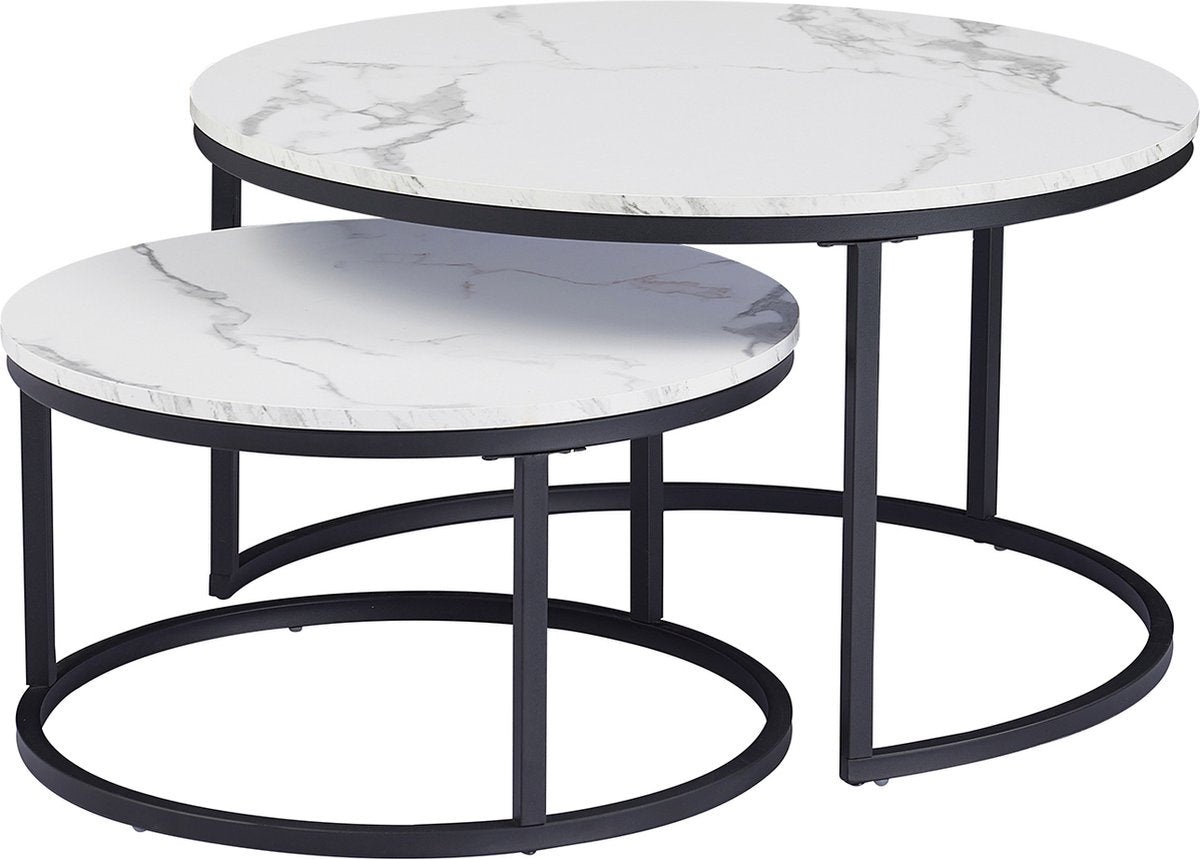 Moderne Salontafel - Set van 2 - Koffietafel - Bijzettafel - 2 Stuks - Ronde Salontafel - Wit - Marmer look - 80 en 60 cm