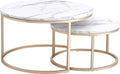 Nique Ronde Salontafels Wit Marmer set van 2 – Bijzettafel Goud – Salontafel Rond MDF Marmerlook Ø80 & Ø60cm