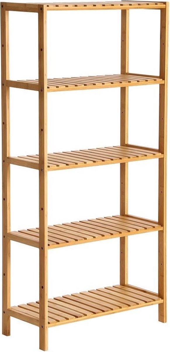 Multifunctioneel bamboe opbergrek. Geschikt voor o.a. badkamer, keuken en hal. Met 5 verstelbare planken.
