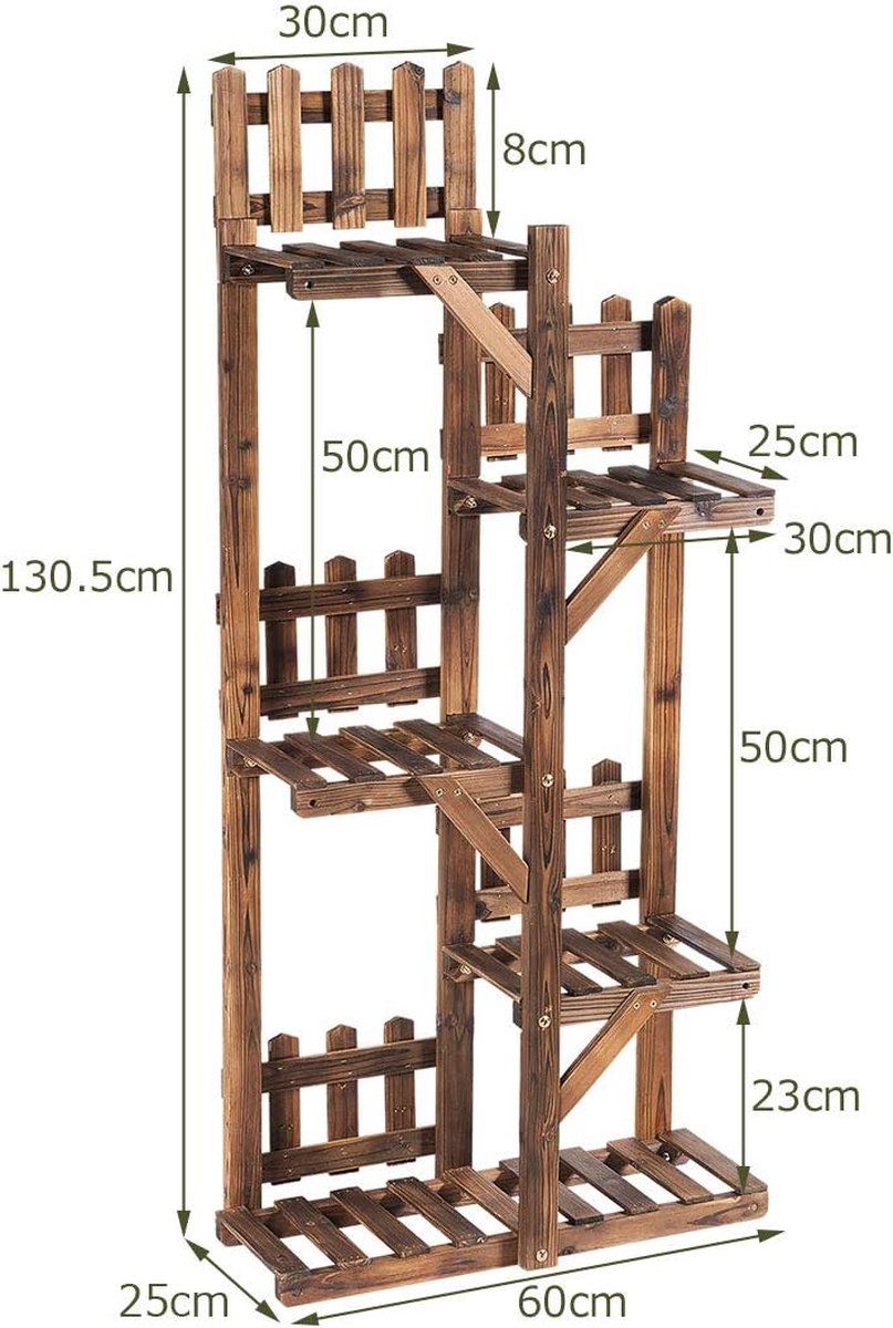 - 【100% Massief Sparrenhout】Het sparrenhout is behandeld met carbonisatie op hoge temperatuur en de vervormingsweerstand is tegelijkertijd verhoogd. Het is ook water- en corrosiebestendig. De plantenstandaard met stevig frame kan 10 kg van elke plank dragen.