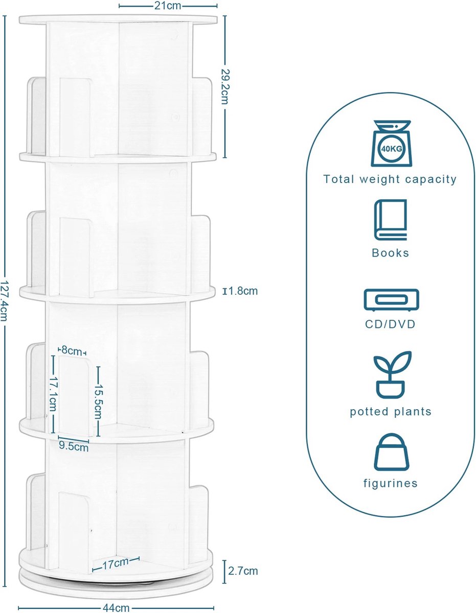 De roterende functie zorgt ervoor dat je snel en eenvoudig toegang hebt tot je favoriete boeken en accessoires, zonder veel ruimte in beslag te nemen. Het slimme ontwerp maximaliseert de opslagcapaciteit terwijl het de ruimte efficiënt benut. Deze boekenplank is een ideale oplossing voor mensen die stijlvol willen organiseren in een beperkte ruimte.