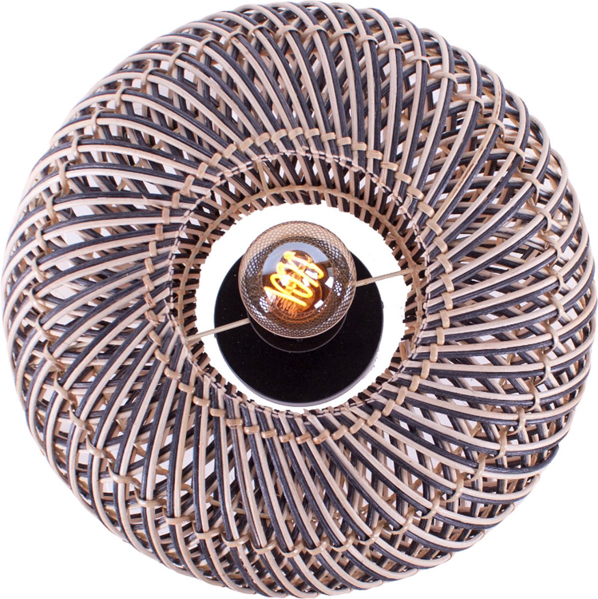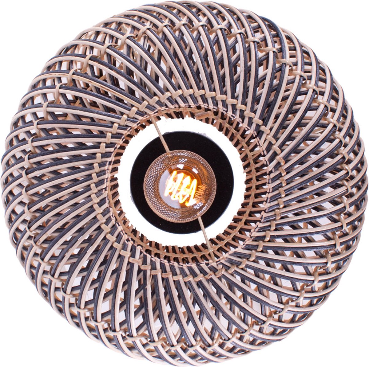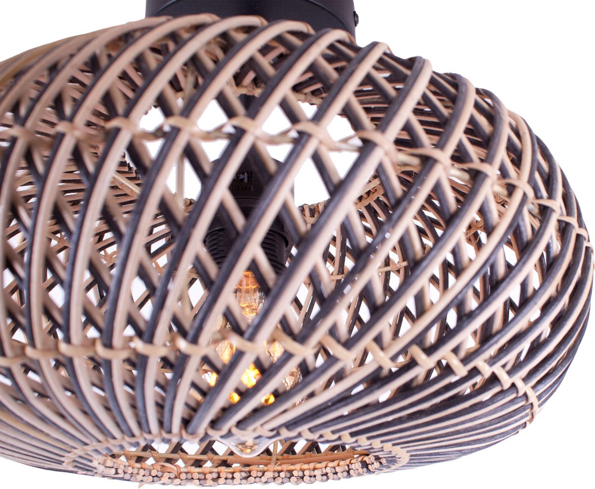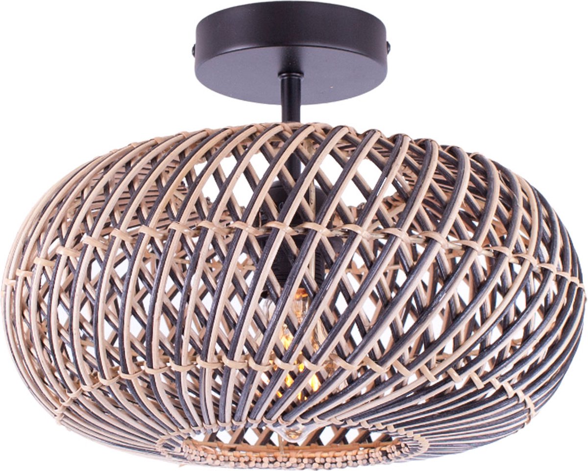 Rotan plafondlamp Stripes | 1 lichts | zwart / naturel | rotan / metaal | Ø 30cm | eetkamer / eettafel / woonkamer lamp | modern / landelijk design