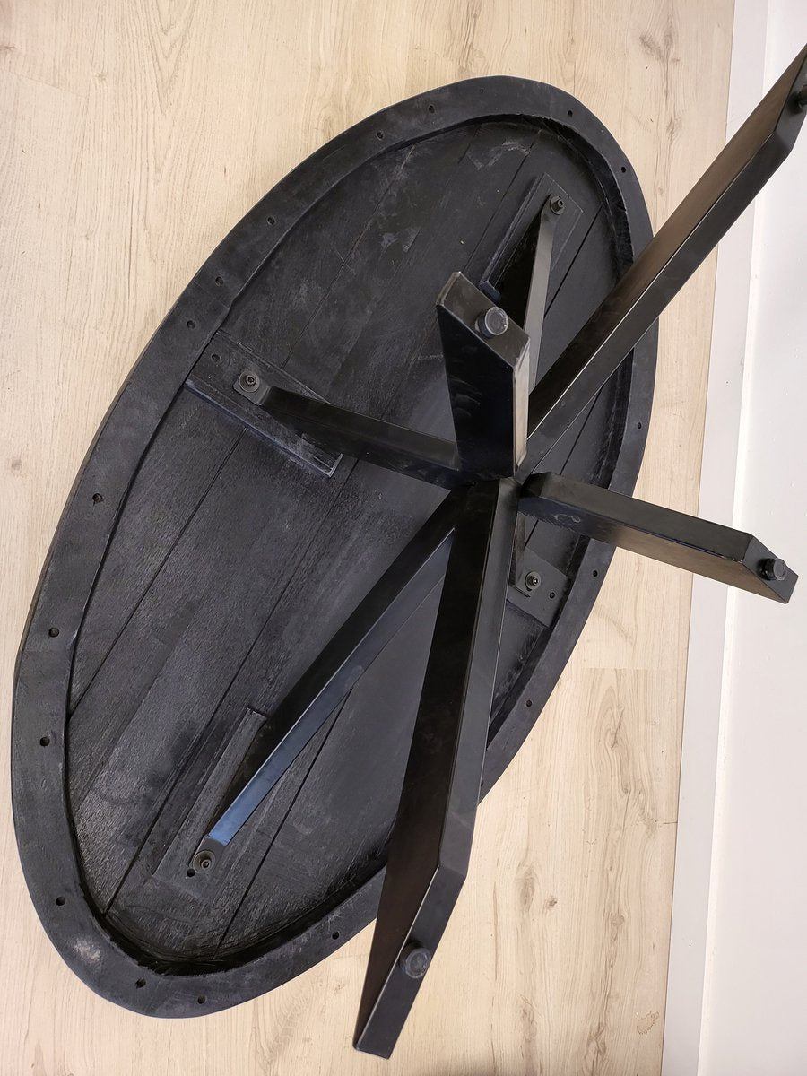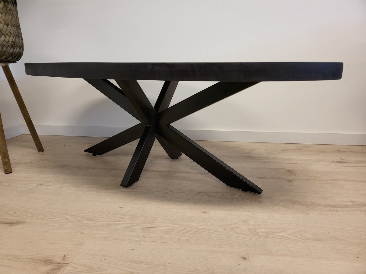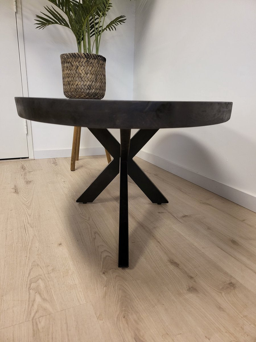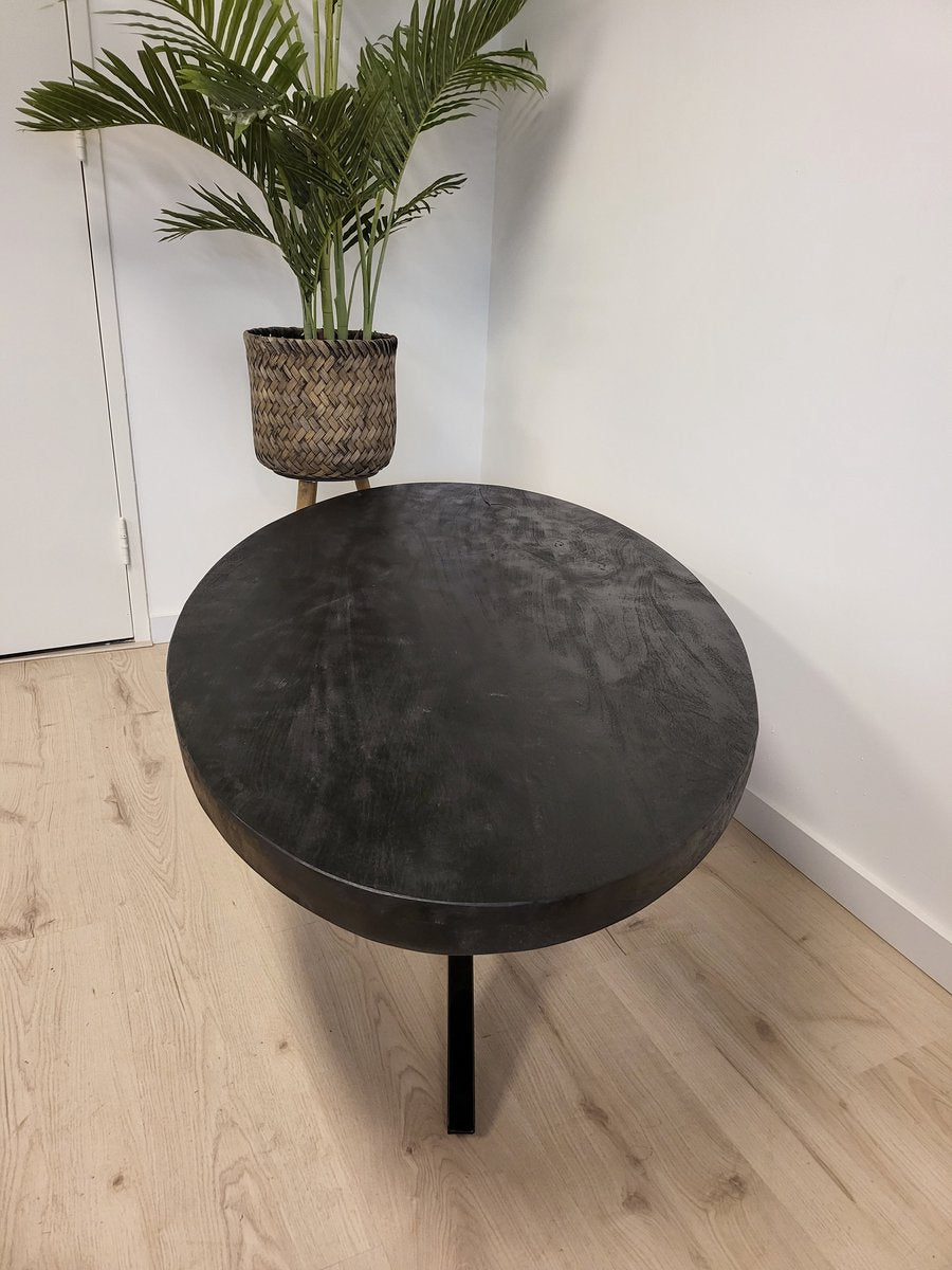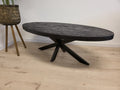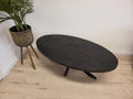 Salontafel Anne - volledig zwart - ovaal 120cm lang mangohout met matrix poot 80cm breed metaal frame