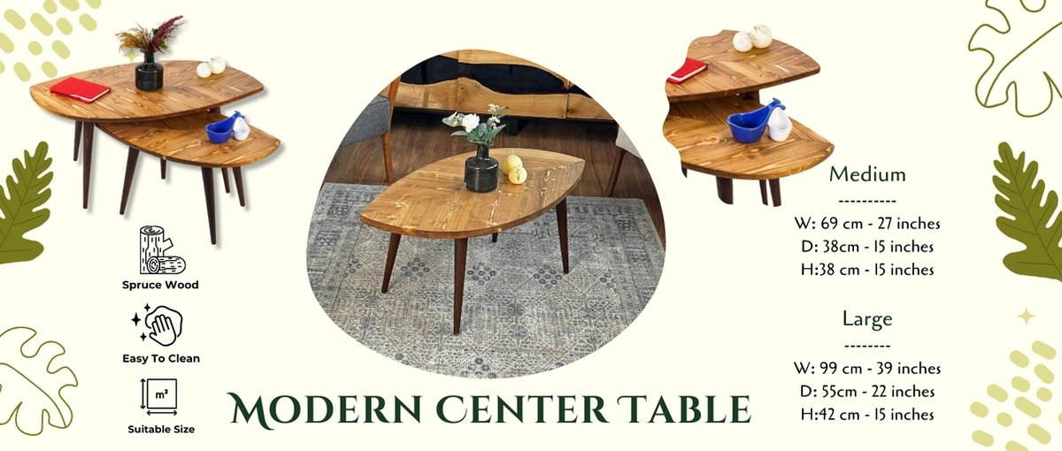 - Handgemaakt ontwerp: Met de natuurlijke schoonheid en houtdetails van sparrenhout is elk van onze salontafels een uniek meubelstuk voor je huis.