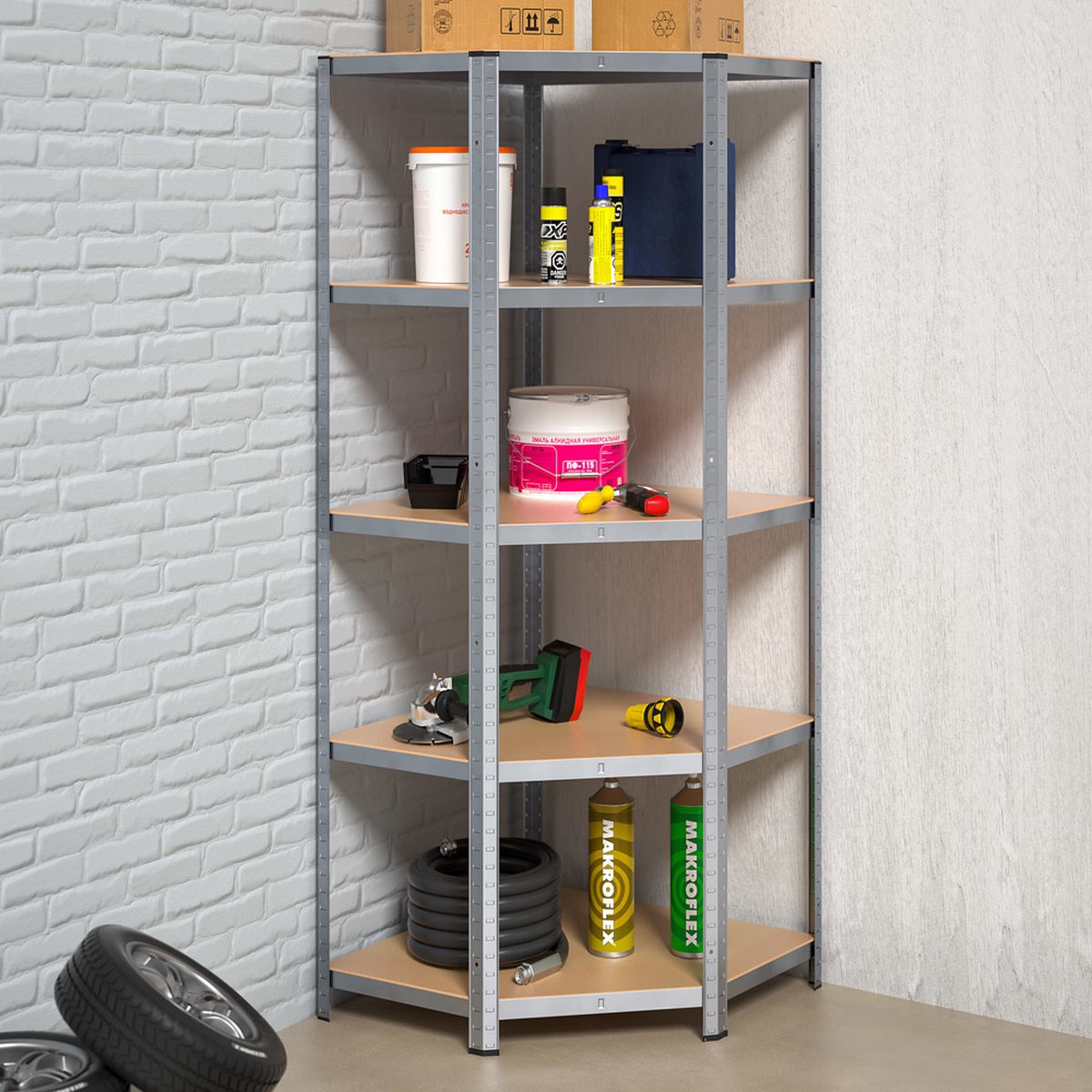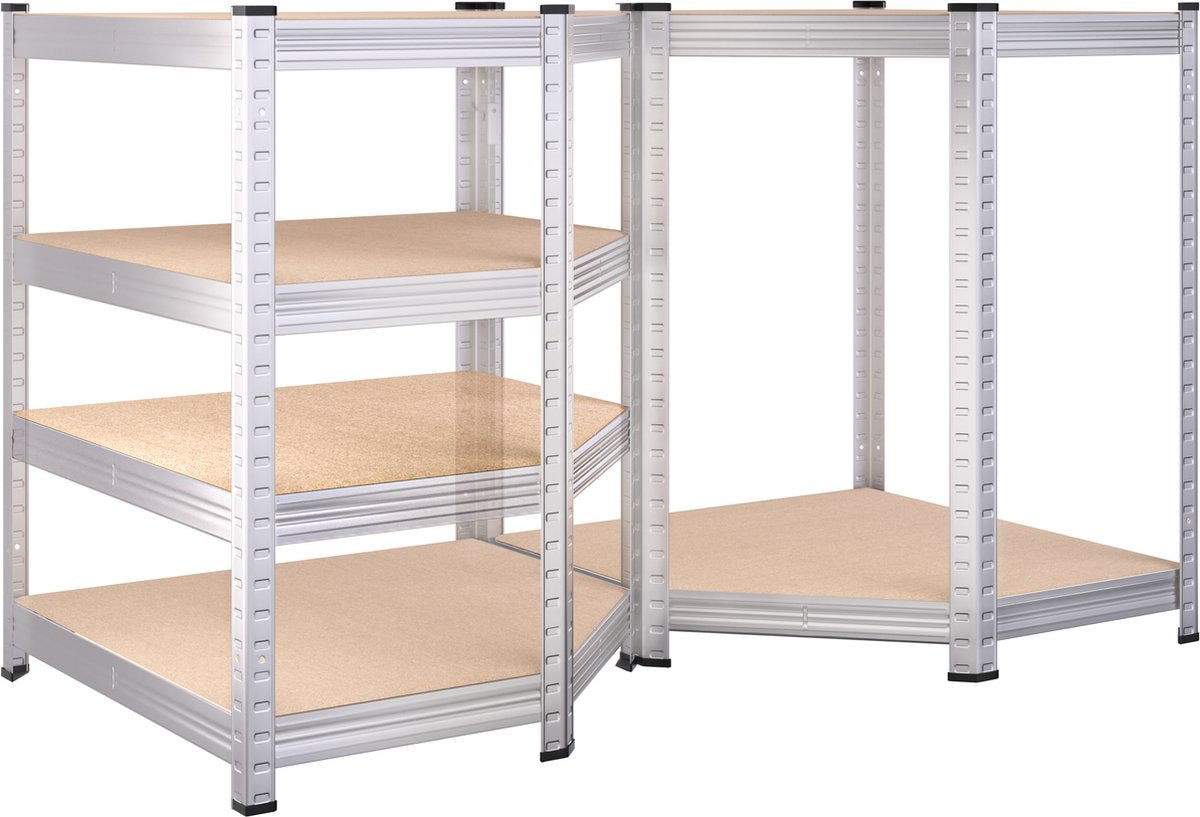 Het hoekig opbergrek 180 x 75 x 40-75 cm is ruimtebesparend en ideaal voor ongebruikte hoeken. De hoekkast kan prachtig gecombineerd worden met andere 40 cm diepe stellingkasten.