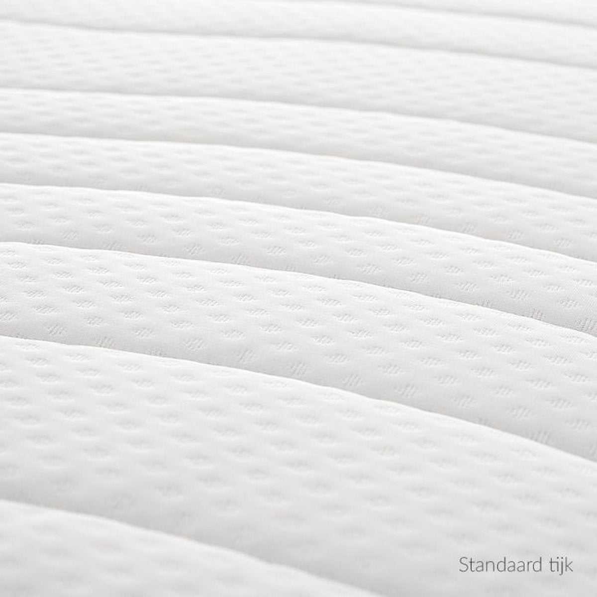 Slapen als in een hotel? Heerlijk uitgerust wakker worden. Maak van uw bed een top product met onze topmatrassen. Krijg de ondersteuning die je verdient. Met onze koudschuim topmatras word je uitgerust wakker en beleef je het comfort van luxe. Door de hoge kwaliteit is deze topper de ultieme toplaag voor jouw bed. De hoge kwaliteit koudschuim (HR45), is ademend, vochtregulerend, veerkrachtig en heeft een lange levensduur. Het koudschuim is afgewerkt met een luxe doorgestikte en afritsbare dubbeldoek hoes. De hoes kan gewassen worden op 30 graden. Nederlands product. Alle topdekmatrassen worden in Nederland gemaakt en direct uit ons atelier geleverd. Op deze manier bieden wij hoogwaardige producten met een snelle levertijd tegen een scherpe prijs. Onze toppers worden gratis bezorgd. Per mail houden we u op de hoogte van de informatie betreffende de levering. Koudschuim HR45 topdekmatras* Extra dik – circa 7CM* Luxe, afritsbare dubbeldoek hoes* Korte levertijd* Nederlands product - Direct uit ons atelier* Gratis verzending. De koudschuim kern: In deze topper bevindt zich een zeer goede kwaliteit koudschuim met een soortelijk gewicht van 45 kg/m3. Dit betekent dat het schuim goede ondersteuning biedt en duurzaam is. Doordat ons koudschuim 100% opencellig is kan lucht ongehinderd door het schuim stromen, waardoor warmte en vocht eenvoudig wordt afgevoerd. Hierdoor blijft de topper koel en droog. De kern van de topper is exact 4 cm. Samen met de rijk doorgestikte hoes komt de totale hoogte op ca. 7 cm. De afritsbare hoes: De bekleding van deze topmatras bestaat uit een afneembare / afritsbare buitenhoes die los te wassen is tot 30 graden. De hoes is opgebouwd uit 2 belangrijke onderdelen. Het elastische dubbeldoek en de vulling waarmee de hoes is doorgestikt. De vulling is een Climavezel die gemaakt is van een holle polyestervezel die zorgt voor een perfecte afvoer van vocht en goede isolatie. Bovendien biedt de Climavezel geen voedingsbodem voor bacteriën.