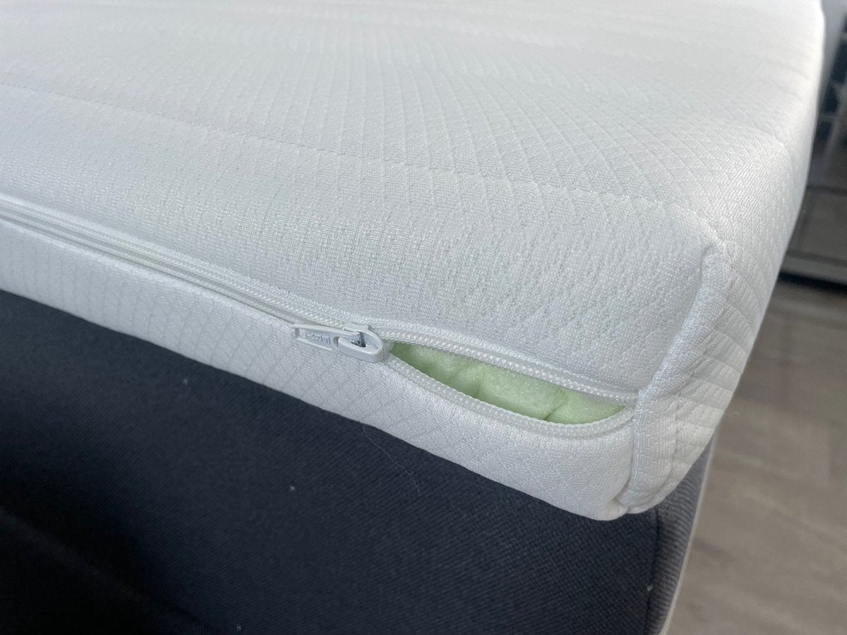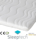 Verhoog direct het comfort Dit topdekmatras van traagschuim is te gebruiken met alle soorten matrassen zowel nieuw als gebruikt. Het topdekmatras zal door de extra drukverlagende werking van het traagschuim de drukpunten verminderen en het slaapcomfort verbeteren. Traagschuim is zachter dan latex en vormt naar het lichaam ten opzichte van comfortschuim en koudschuim. Bij tweepersoons topdekmatrassen zorgt het topdekmatras er voor dat de naad tussen twee éénpersoons matrassen verdwijnt, waardoor je niet in de naad rolt tijdens het slapen. Niet te zacht en niet te stevig De dikte van het topdekmatras is ca. 9 cm, ventileert goed en heeft een densiteit van 50. Hierdoor voelt het comfortabel aan en niet te zacht of te stevig. De zachte en soepele tijk is afritsbaar. Bijkomend voordeel van het topdekmatras traagschuim: je verlengt de levensduur van het matras. Goed om te weten Dit topdekmatras is direct klaar voor gebruik en is geproduceerd in Nederland volgens de strengste normen, waardoor je de zekerheid hebt dat het vrij is van schadelijke stoffen! • Verbetert je slaapcomfort • Ventileert goed • Heft de naad op bij twee 1-persoons matrassen • Luxe afritsbare tijk • Makkelijk oprolbaar • Licht in gewicht (afhankelijk van maat, ± 8 kg t/m ± 18 kg) • Nederlands product • Verzending op werkdagen binnen 24 uur • Slim verpakt & lief voor het milieu: 100% recyclebaar! Keurmerken Certipur Sleeptech werkt alleen producenten die voldoen aan strikte veiligheids-, gezondheids- en milieueisen mogen gebruik maken van dit label. Öko-Tex Het Sleeptech Topper bestaat uitsluitend uit materialen die het Öko-Tex 100 certificaat (eerste klasse) bezitten. Dit keurmerk wordt alleen toegekend als het product vrij is van schadelijke stoffen die een risico vormen voor de gezondheid van mensen. De eerste klasse is de hoogst mogelijke klasse.