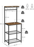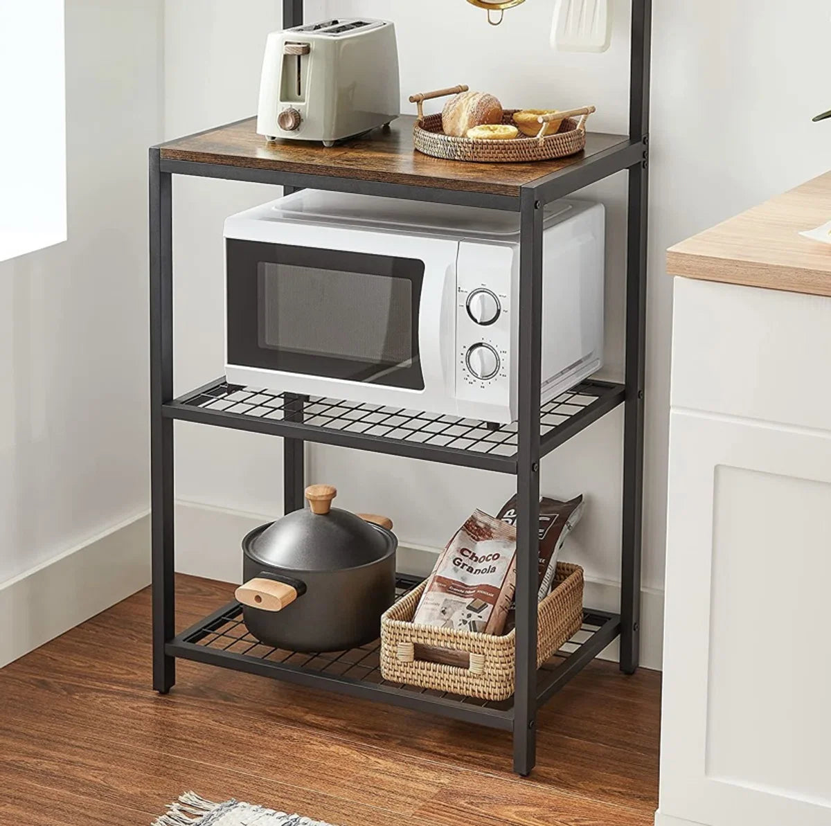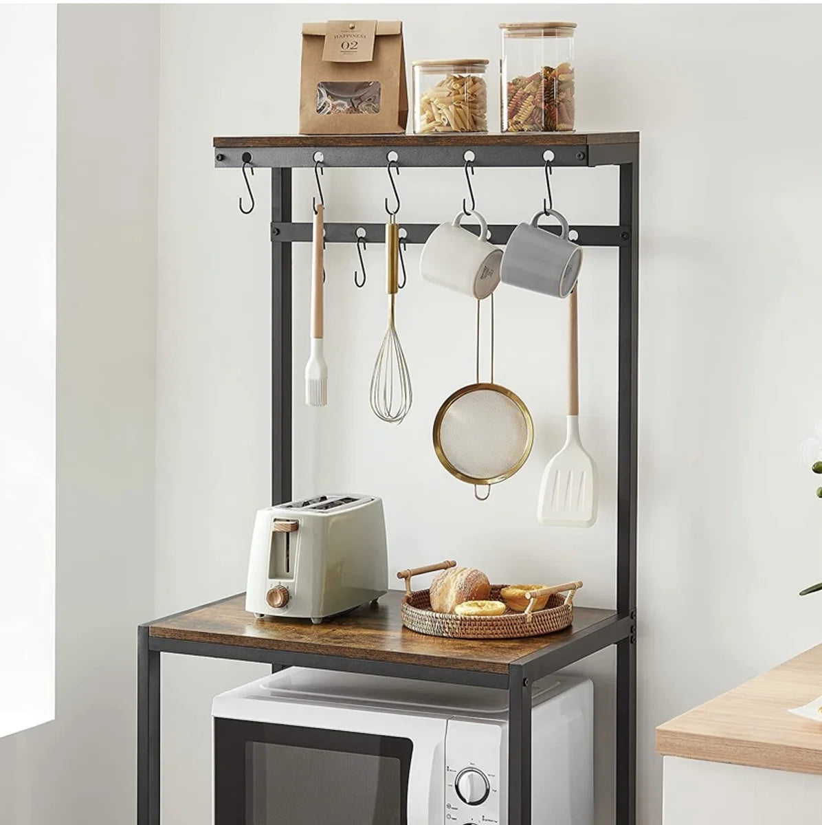 VASAGLE KKS021B01 Keukenplank met planken, magnetronplank met 12 haken en metalen frame, industrieel ontwerp, voor magnetron, kookgerei, 60 x 40 x 151,5 cm, vintage bruin/zwart