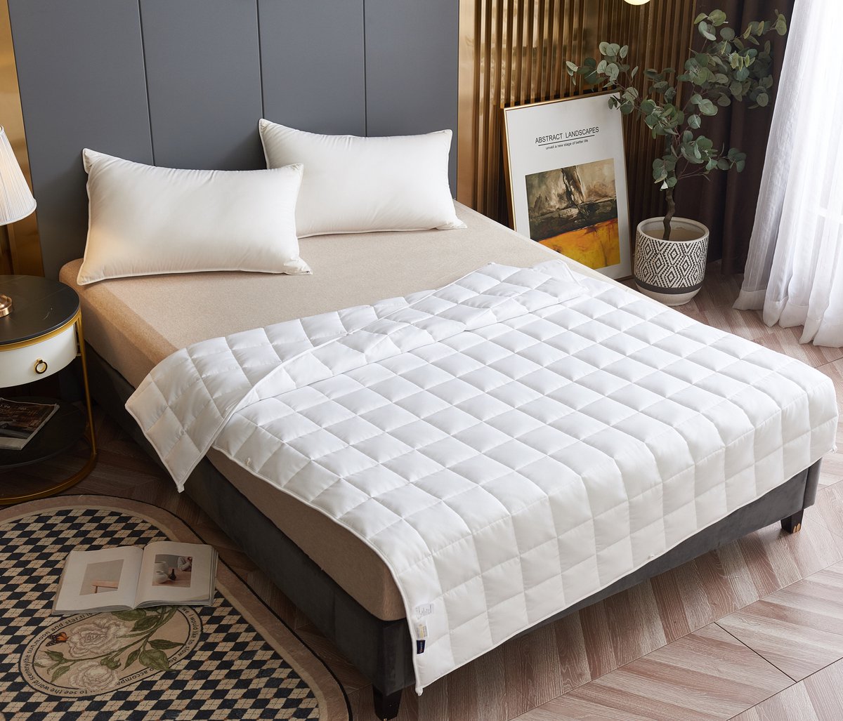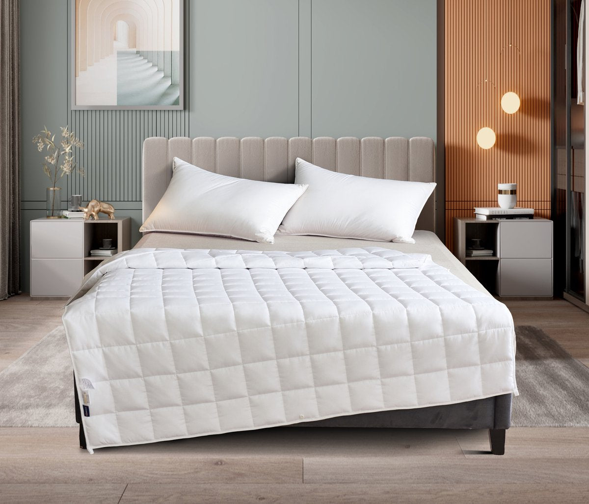 - Katoen past zich aan: het is warm in de winter en koel/ademend in de zomer. Hierdoor kun je jouw verzwaringsdeken het hele jaar door gebruiken.