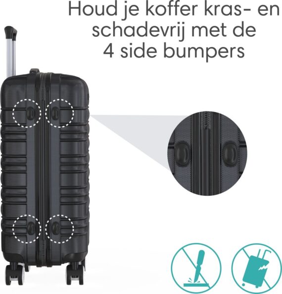 koffer is voorzien van vier zijbumpers voor extra bescherming en een afwerking die de