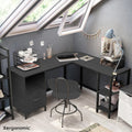De montage is een fluitje van een cent dankzij de eenvoudig te volgen instructies en alle benodigde montagemateriaal in het pakket. Bovendien is het hoekbureau uitgerust met verstelbare poten voor stabiliteit op ongelijke vloeren.
