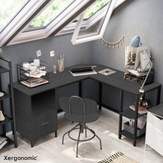 Maak kennis met het stijlvolle en functionele hoekbureau van Xergonomic, de ideale verrijking van jouw kantoorruimte!