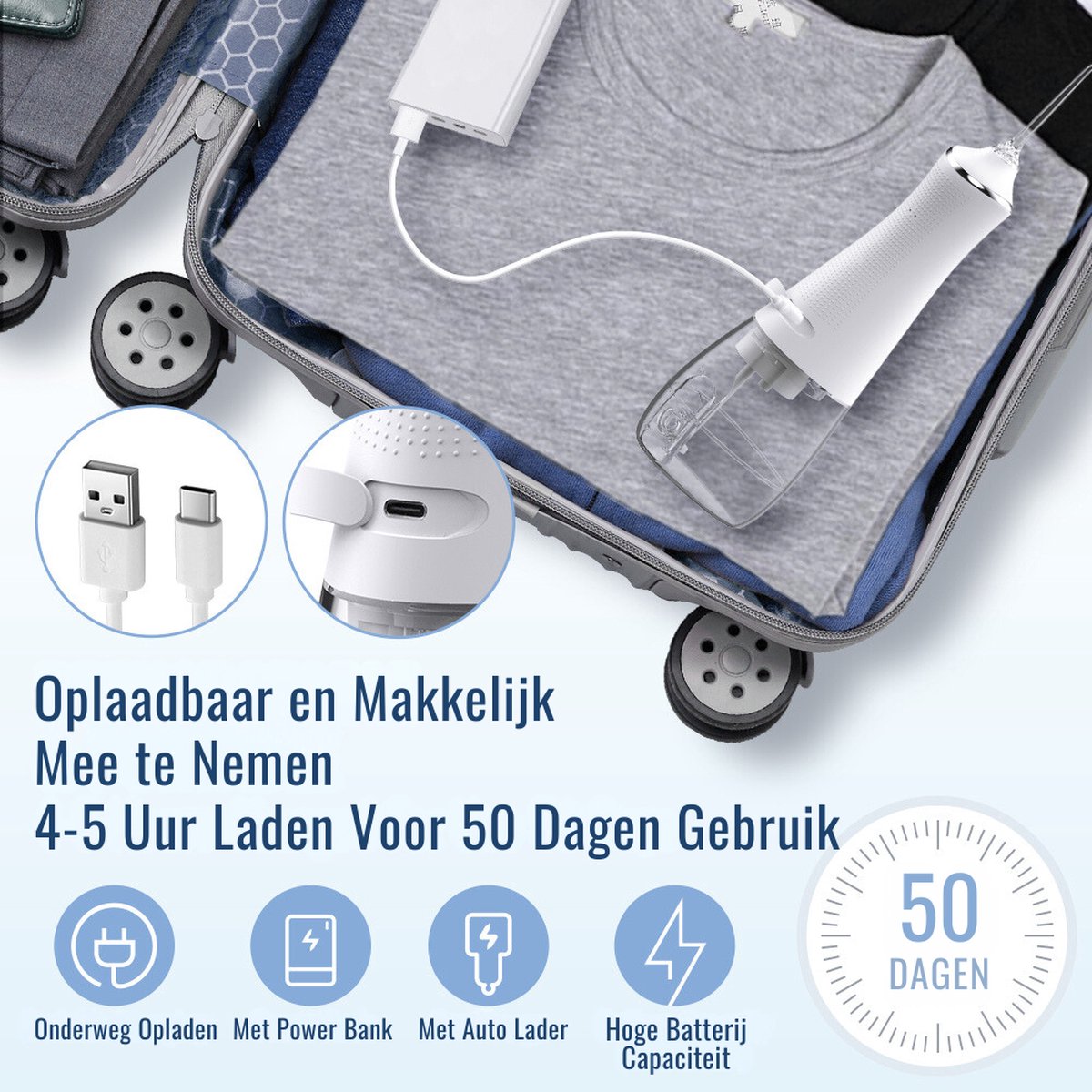 - Inclusief: 5 mondstukken, USB-C oplader