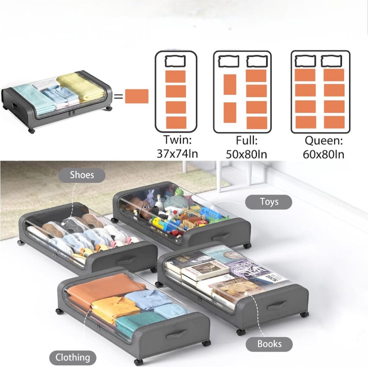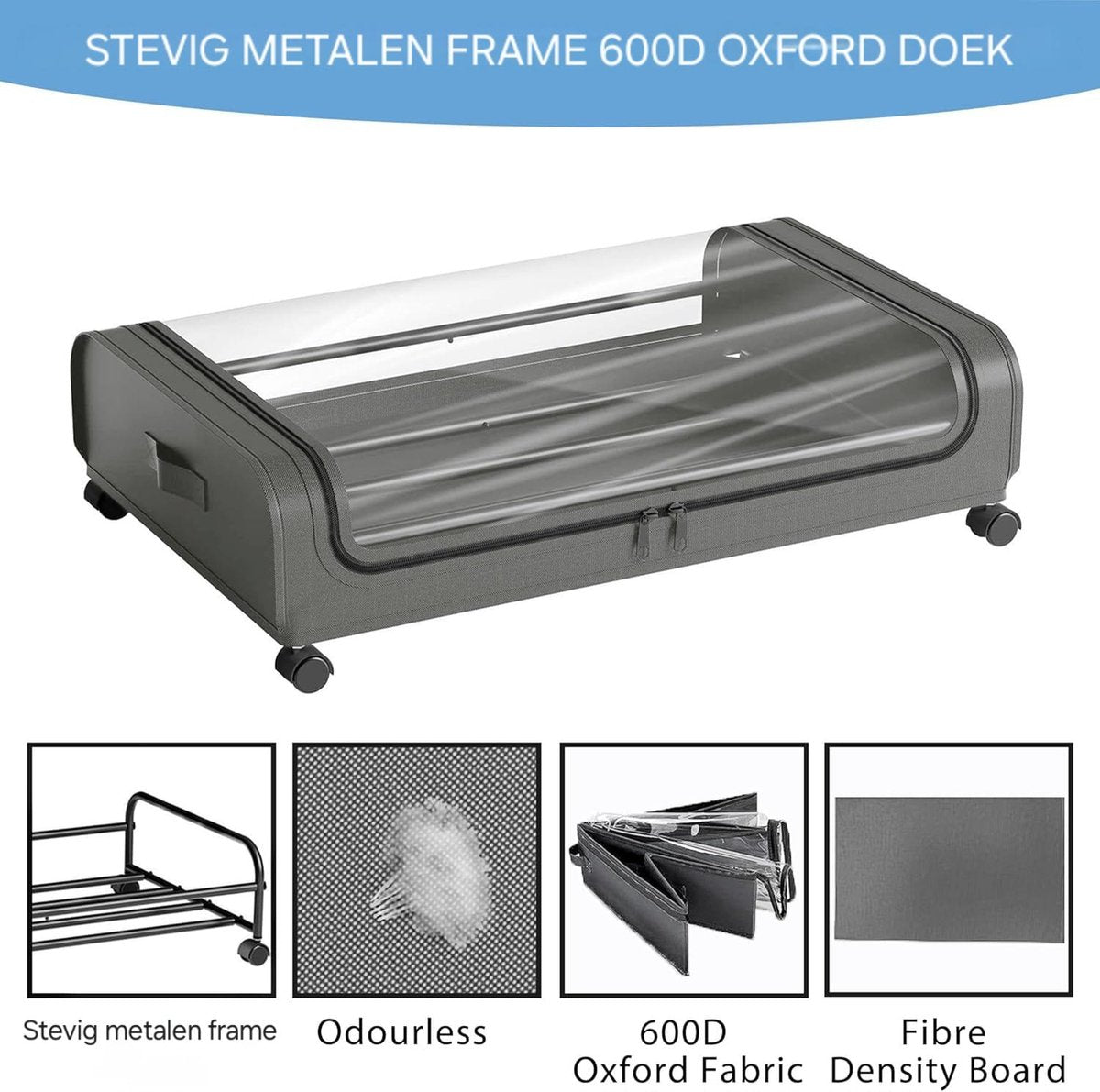 YOLO SHOP®-opbergbox onder bed-2 Pack-met Wielen Deksel Rolling Metalen Frame Onderbed Containers Clear Venster- Opbergtas Doos Organisatie Thuis