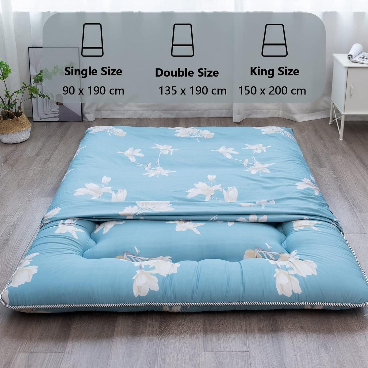 YOSHOOT Magnolia Futon-matras voor 1 persoon - opvouwbaar Japans vloerbed - draagbaar campingmatras - oprolbaar voor ligstoel bank - 150 x 200 cm Opvouwbaar matras