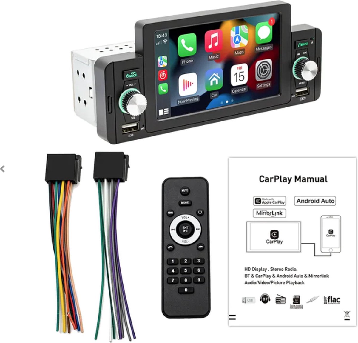 YSM All In One Sound - Autoradio - 1Din - Touchscreen Scherm - 5 Inch - CarPlay - Android Auto - MirrorLink - Bluetooth - Handsfree - Usb