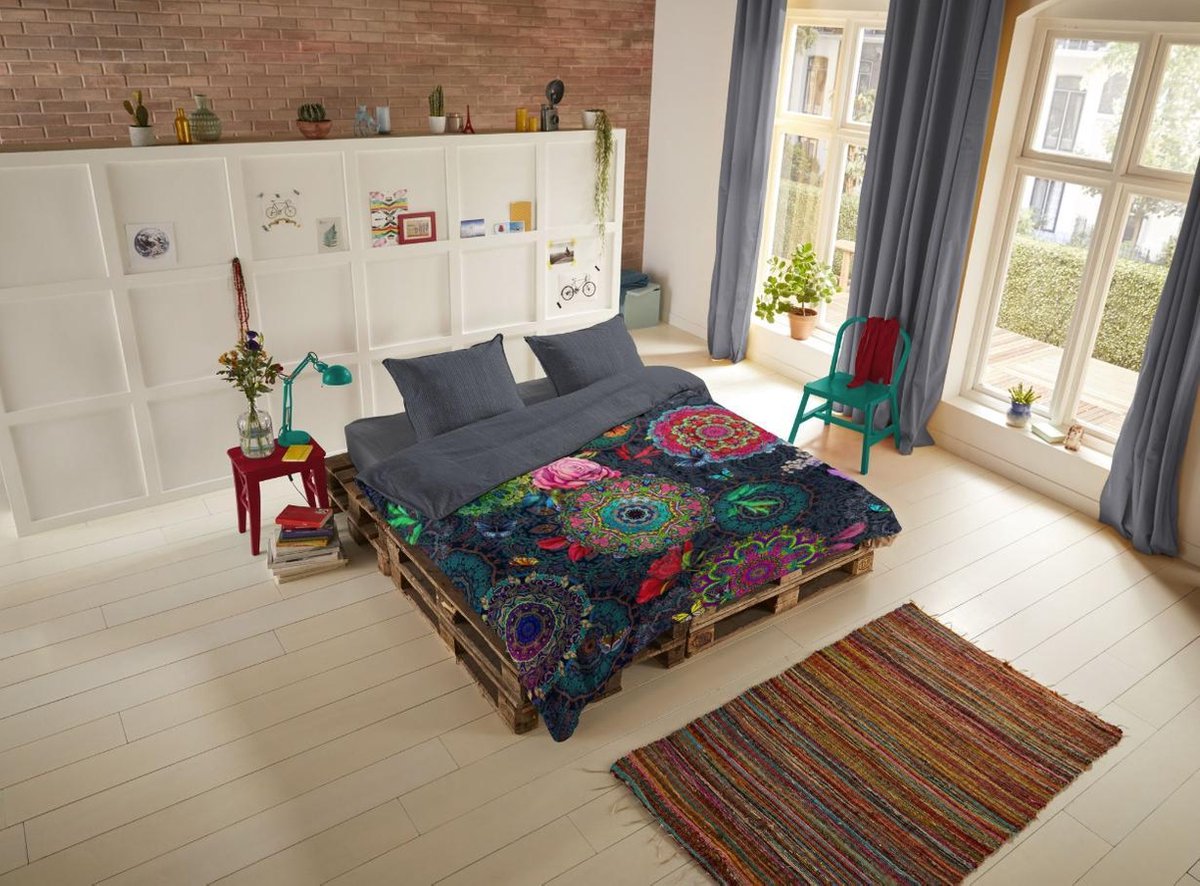 Ga voor een levendig dessin met dit dekbedovertrek. De prachtige kleuren maken van je bed het stralende middelpunt van de kamer. Wil je afwisselen met een rustige print? Draai het dekbedovertrek in mum van tijd om en creëer een andere sfeer. De achterzijde van het dekbedovertrek heeft namelijk een rustige uitstraling door neutraal kleurgebruik met grafische print.