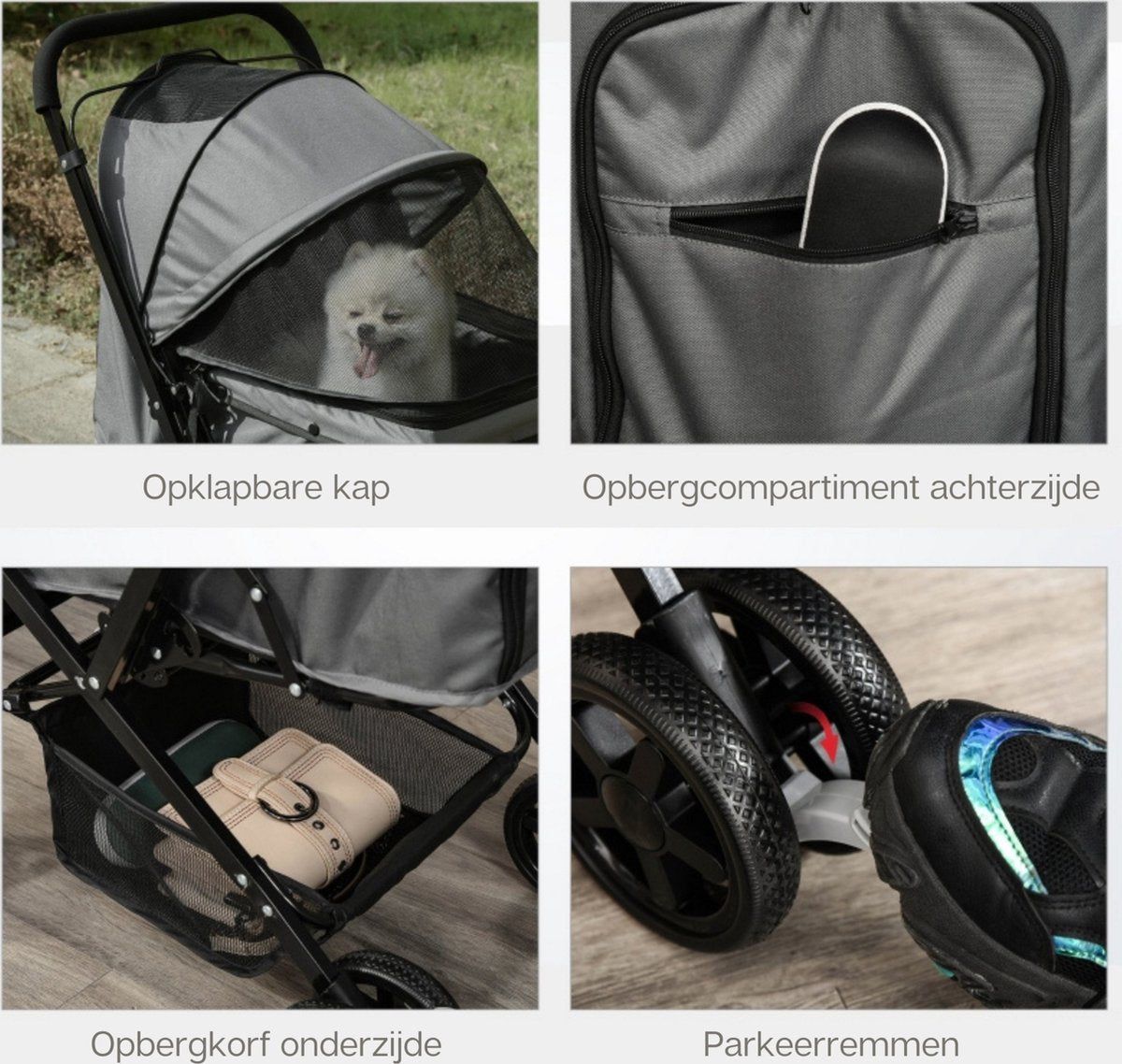 Zenzee - Hondenbuggy - Opvouwbaar - Parkeerrem - Opbergruimte - Grijs