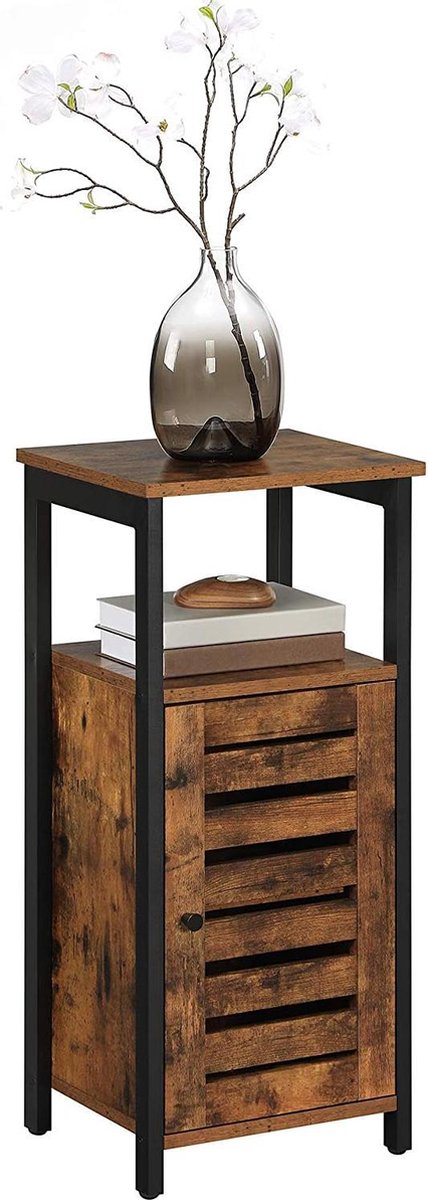 zijkast, nachtkastje, zijkast, stal, nachtkastje met 2 open planken, nachtkastje in industrieel design, woonkamer, slaapkamer, gang, vintage LSC34BX