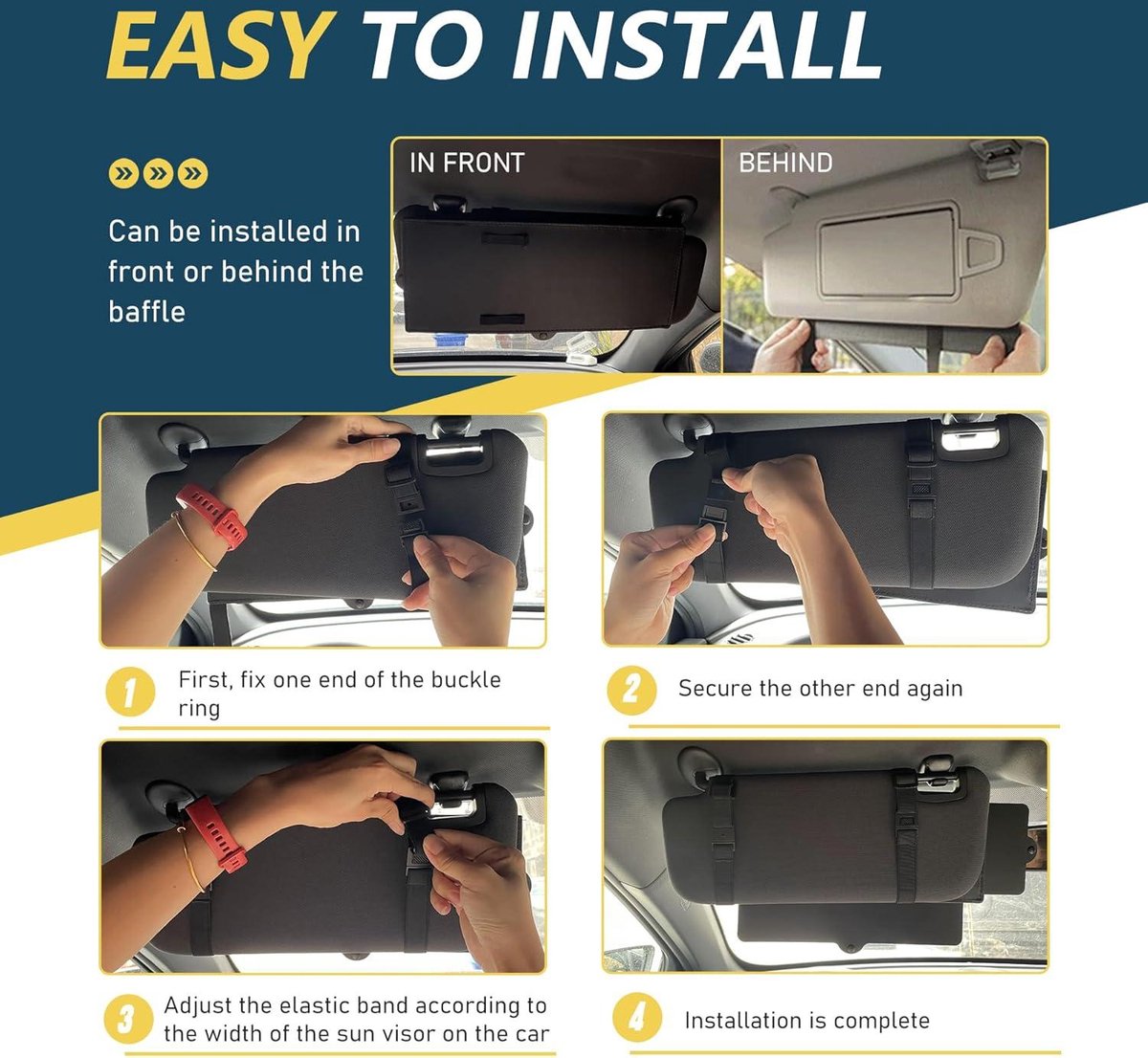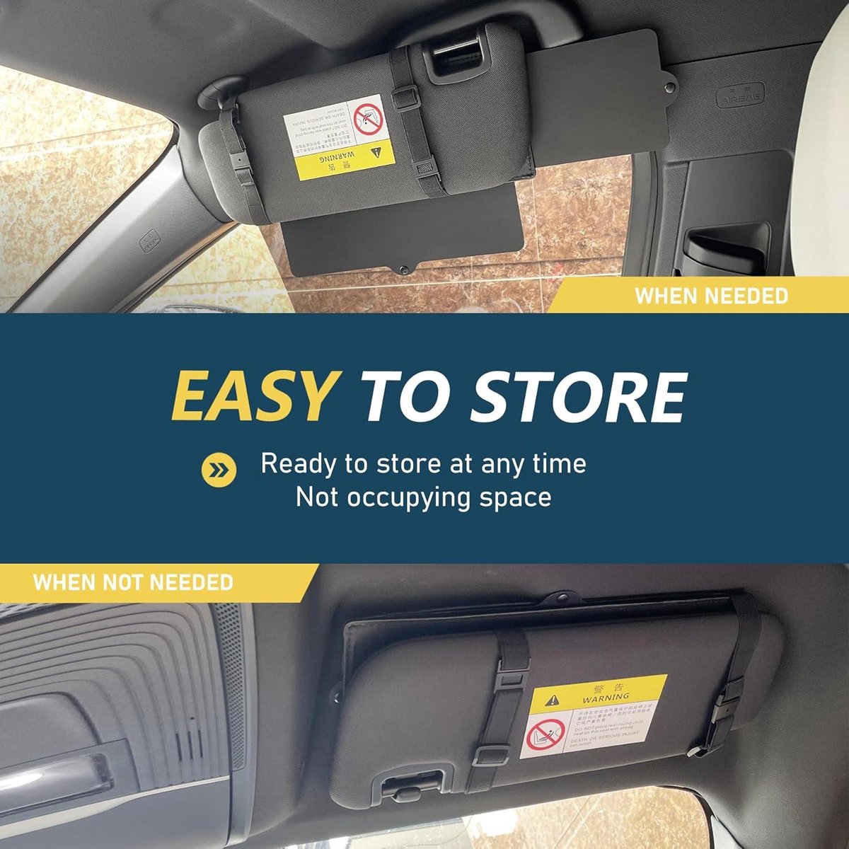 Met een eenvoudige installatie zonder gereedschap, kunt u deze zonneklep verlenging snel bevestigen aan de bestuurders- of passagierszijde van uw auto. Wanneer niet in gebruik, kunnen de verlengers gemakkelijk worden opgeborgen.