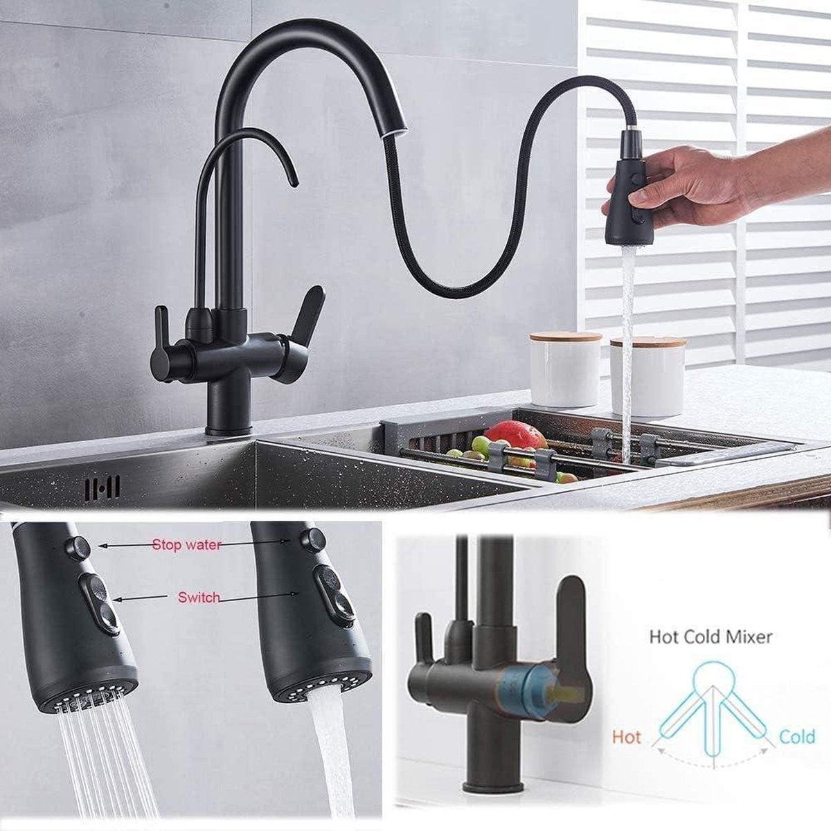 Zuiver Water Keukenkraan met Uitschuifbare Dubbele Handgreep Warm en Koud Drinkwater 3-weg Filter - Zwart - Inclusief Populaire Zoekwoorden waterfilter kraan