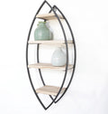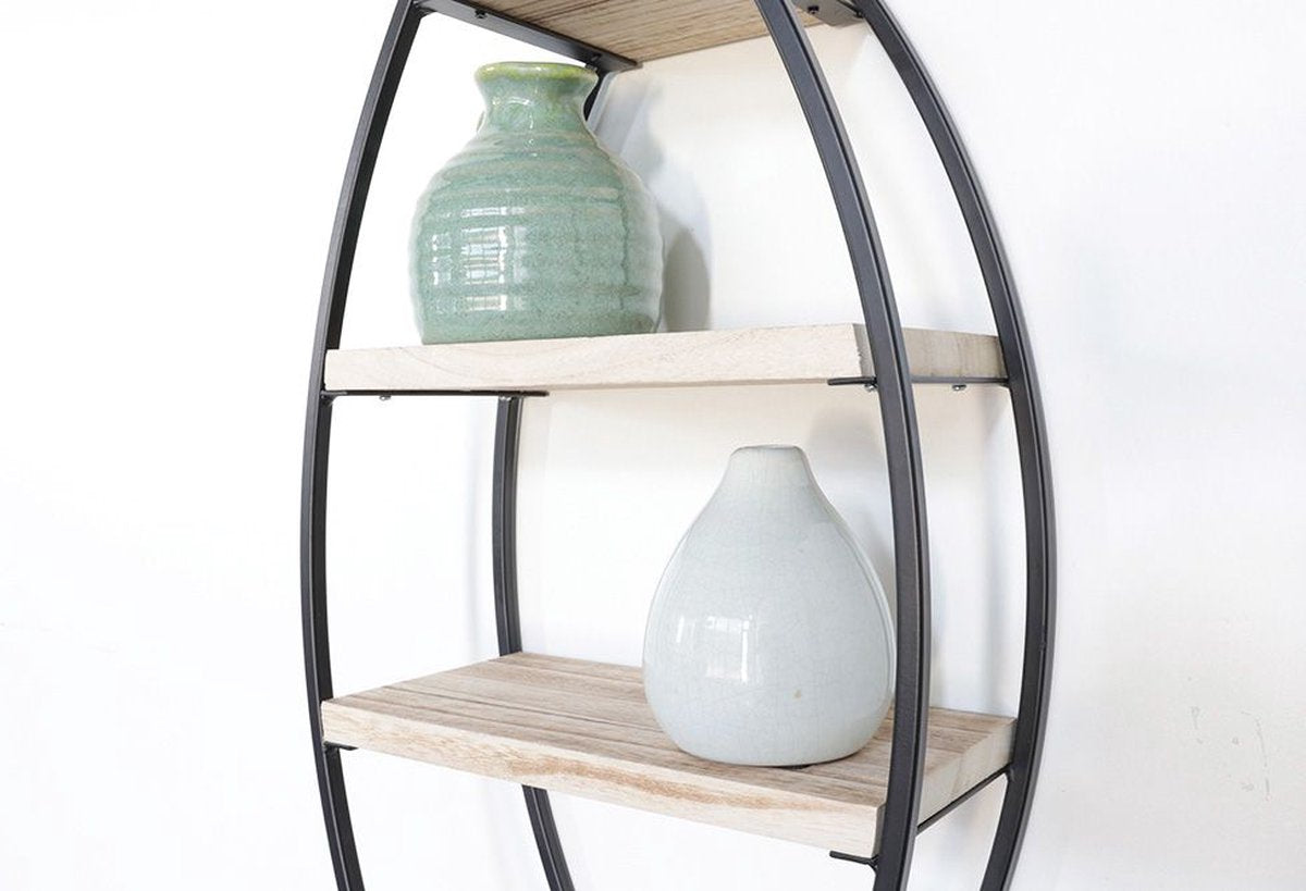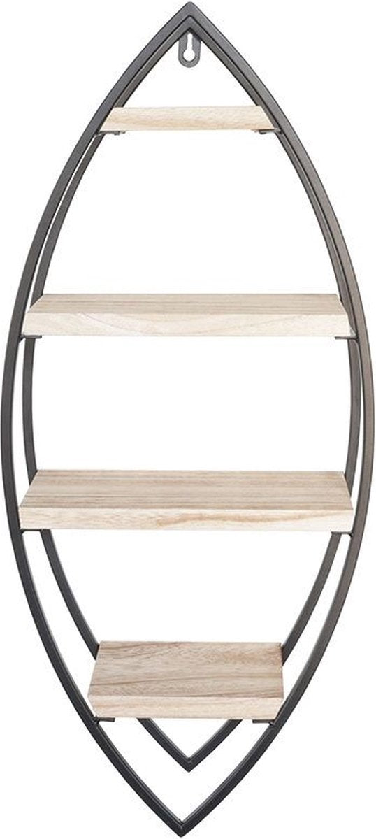 Zwart Metalen Wandrek Ovaal met 4 houten plankjes - 26x60x12 cm
