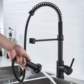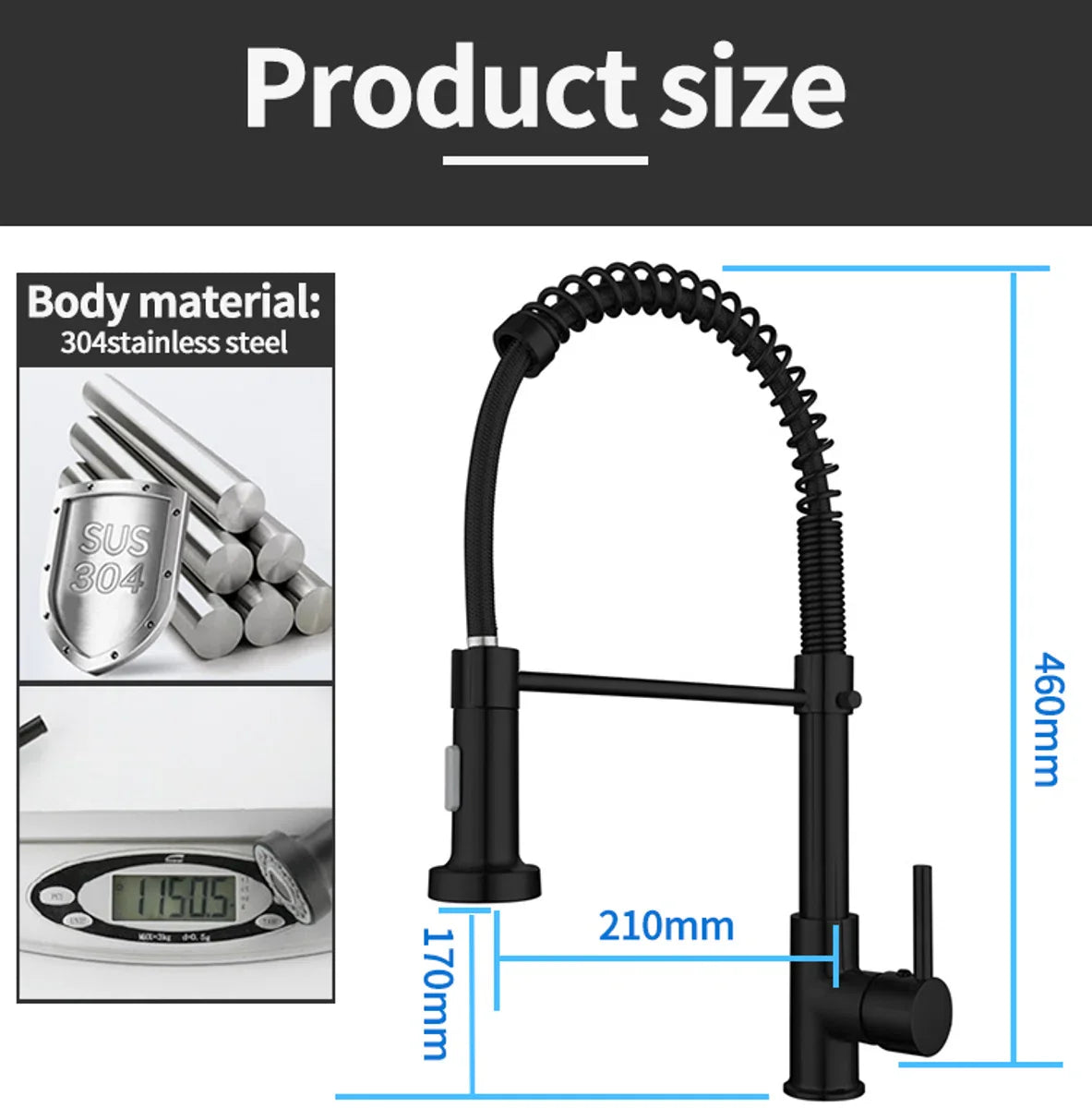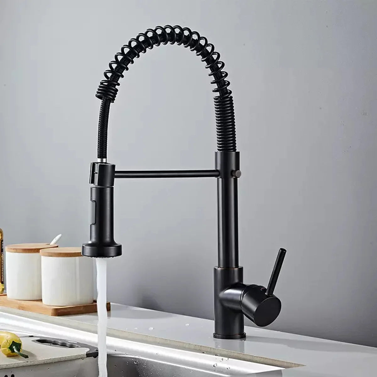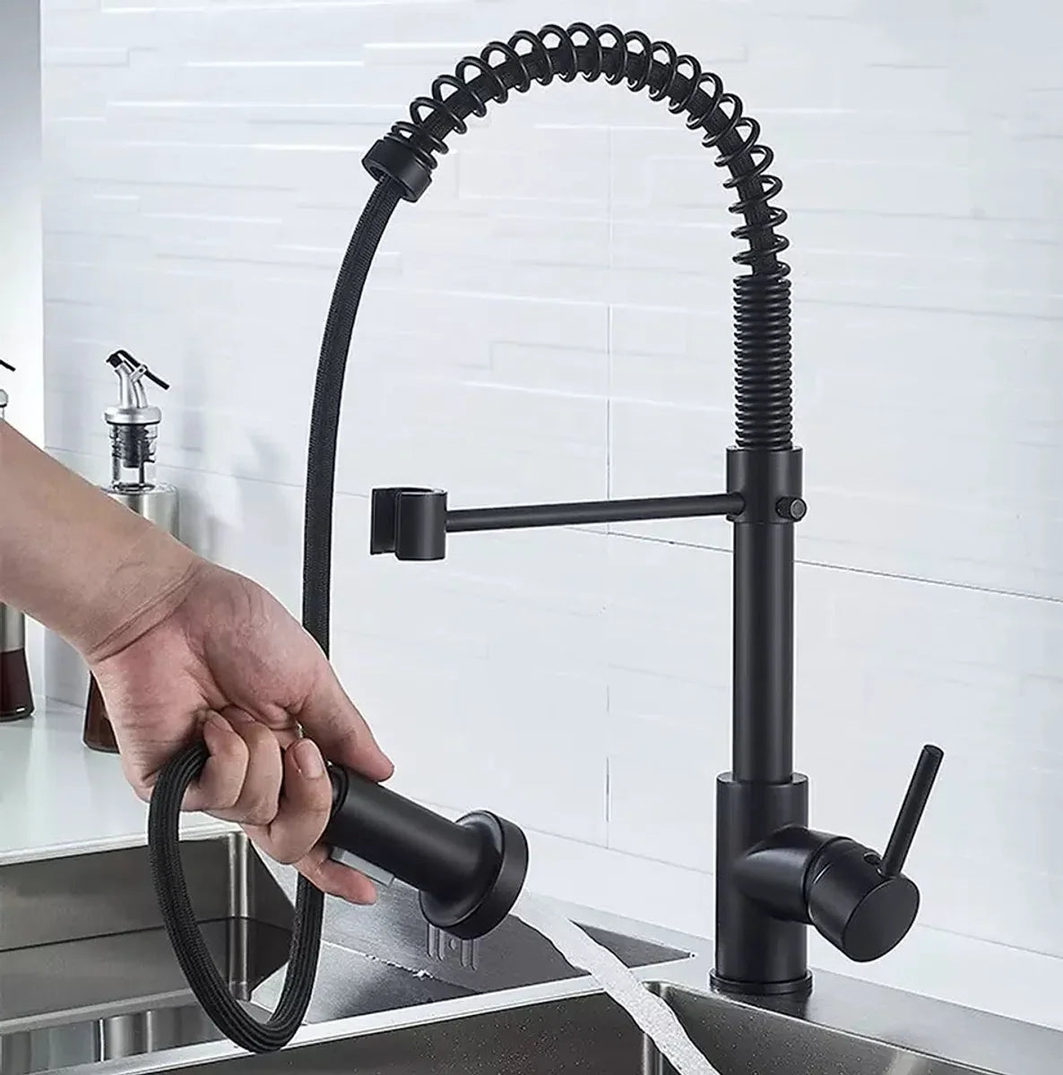 Zwarte Keukenkraan met Uittrekbare Uitloop | Mengkraan | Flexibele Slang zorgt voor een perfecte look in elke moderne of industriële keuken. De kraan is gemaakt van hoogwaardig RVS materiaal en is voorzien van een mengkraan, waarmee je zowel warm en koud kan bedienen. Afhankelijk van hoe je de kraan wil gebruiken kun je kiezen uit een normale straal of een sproeierstraal.