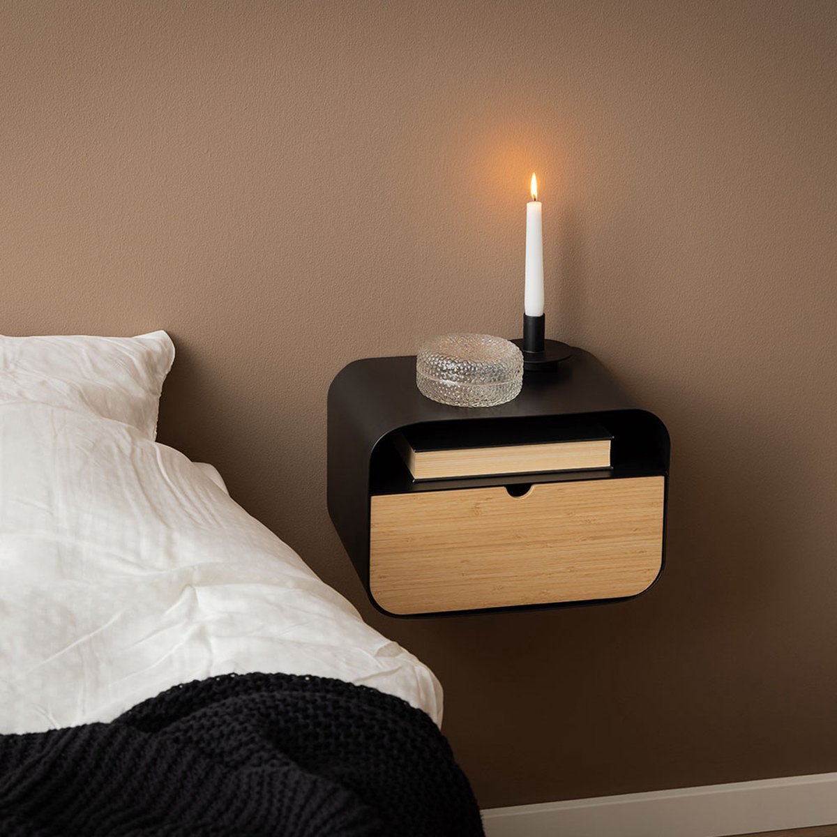 Het Lyra nachtkastje van Smuk is een zwevend nachtkastje met 1 lade. Het kastje is gemaakt van bamboe en metaal, en kan in verschillende ruimtes gebruikt worden. Afmetingen 35 x 25 x 23 cm | 3,8 kg