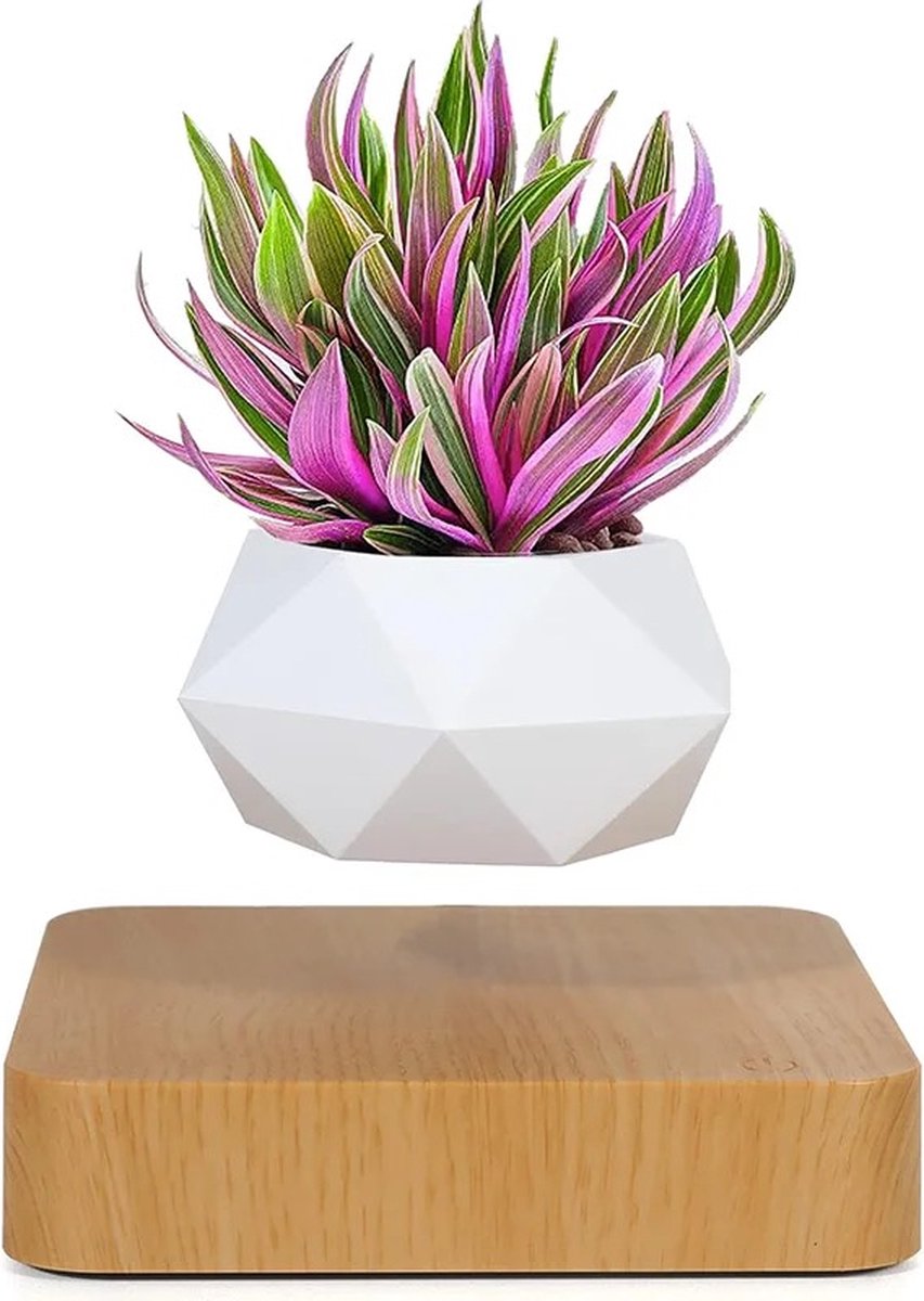 De onderkant van de bloempot en het losse onderstel hebben twee magnetische tegenpolen die er voor zorgen dat de bloempot al ronddraaiend blijft zweven. Eindelijk een bloempot met een futuristisch design dat optimaal tot zijn recht komt in jouw interieur!